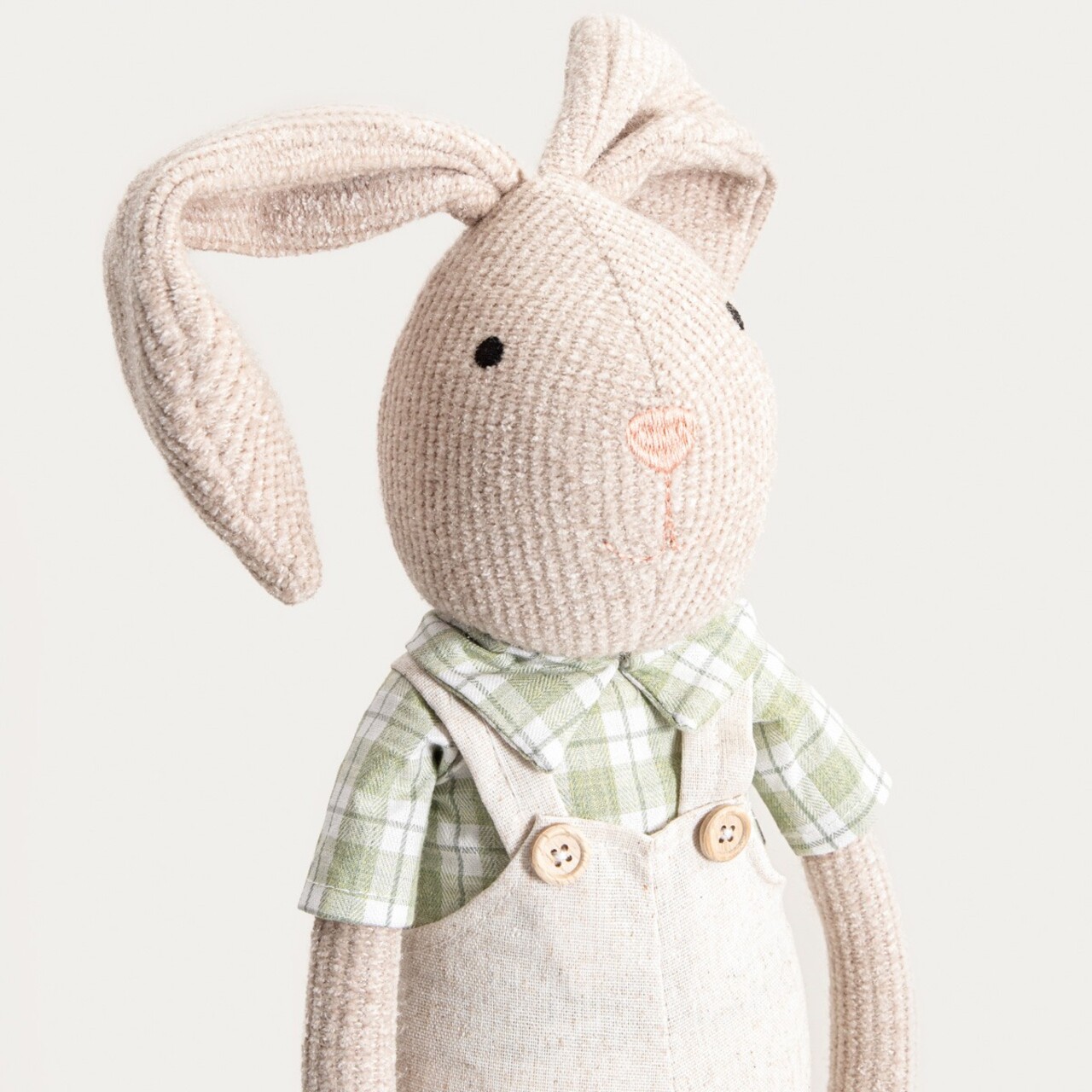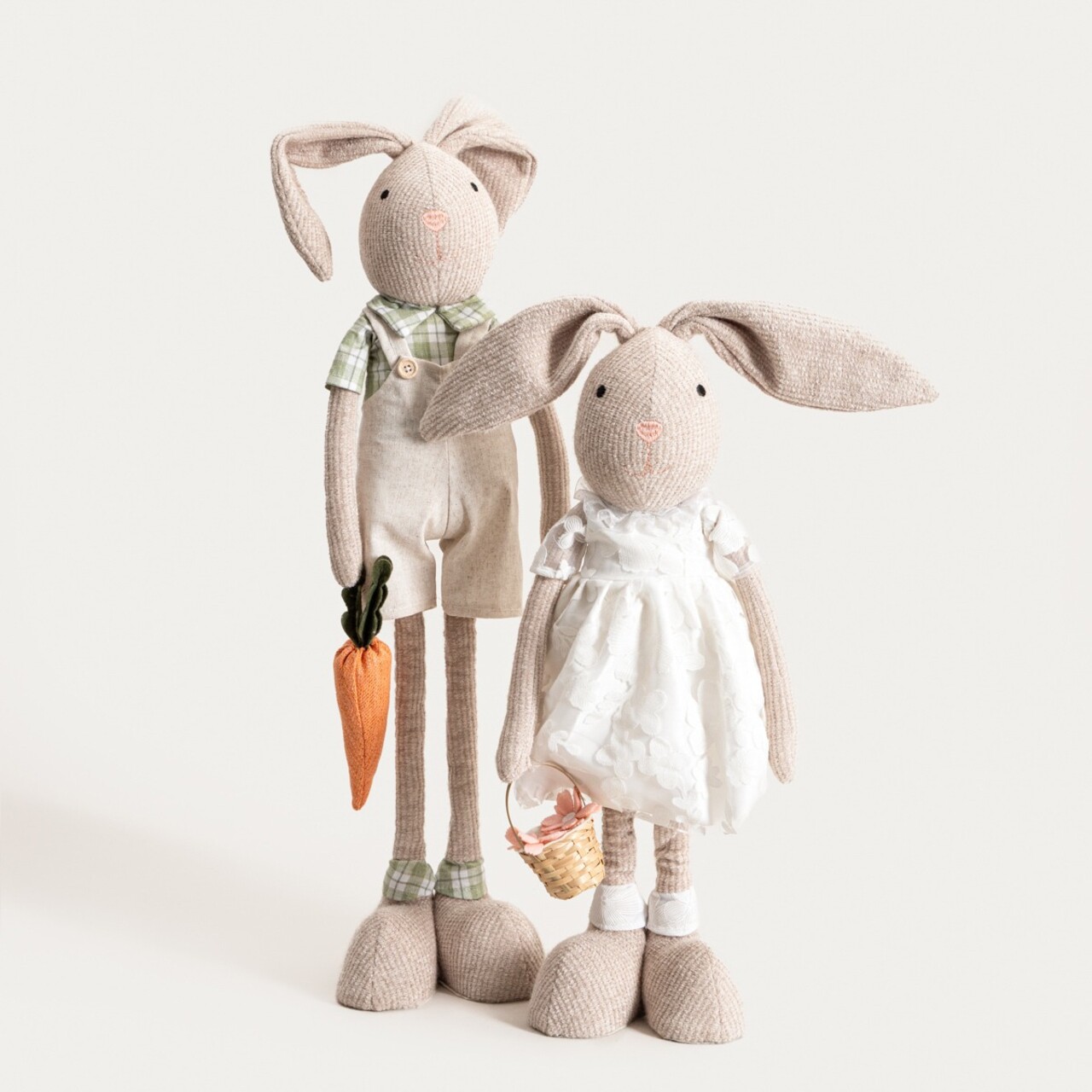Brandul HOMLA vine in ajutorul dumneavoastra cu multitudinea de produse variate datorita carora veti amenaja fiecare colt al locuintei dumneavoastra asa cum va doriti. Indiferent de produsul pe care il veti alege HOMLA va va ofera stil, durabilitate, functionalitate, manopera estetica si design unic. Produsele HOMLA aduc un plus de valoarea si stil oricarei incaperi.Decoratiunea MATTIA este un obiect decorativ in forma de iepure in picioare, proiectat cu atentie la detalii. Camasa fina in carouri, combinata cu pantaloni scurti de culoare deschisa cu bretele, fixati cu nasturi decorativi, confera domnului Iepure un aspect extrem de elegant. Urechile lungi, silueta zvelta si suprafata textila moale subliniaza caracterul figurii si confera un plus de confort interiorului. Picioarele telescopice permit reglarea inaltimii, astfel incat decoratiunea sa poata fi adaptata cu usurinta la locul de expunere. Morcovul pe care iepurele il tine in mana este un detaliu subtil de primavara care subliniaza caracterul sezonier al decoratiunii.Decoratiunea arata bine asezata pe podea langa o comoda, o consola sau in zona de intrare. De asemenea, se potriveste bine ca parte a unui aranjament de primavara sau de Paste in sufragerie sau hol. Inaltimea reglabila faciliteaza adaptarea figurinei la diferite spatii si compozitii.Iepurele MATTIA pe picioare telescopice a fost realizat dintr-un amestec de diferite materiale, inclusiv poliester, nisip, MDF si metal. Acest lucru il face durabil si usor de curatat.Folositi o carpa uscata sau usor umeda pentru a curata decoratiunea. Nu spalati iepurele in masina de spalat.Produsul nu este o jucarie. Nu este destinat copiilor.
