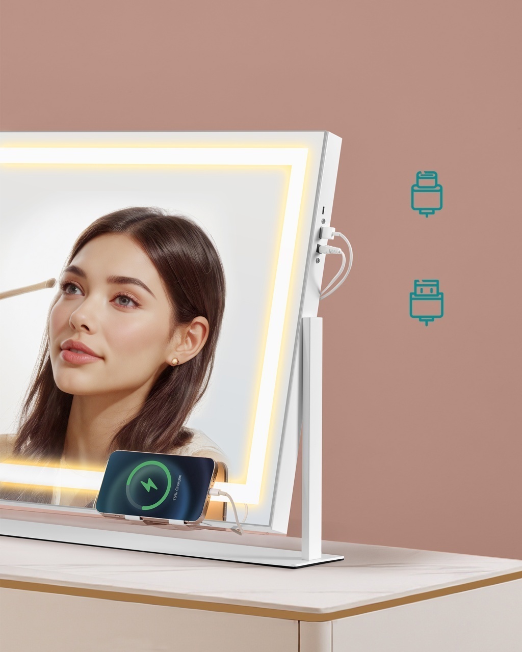 Oglinda de toaleta si machiaj V2 LED Songmics Alb 62.5x10x45.8 cm