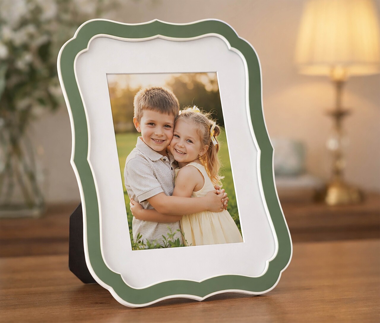Compacta si armonioasa, cu o margine verde intensa. O rama care ofera echilibru si originalitate spatiilor.Dimensiuni fotografie: 15x20 cm