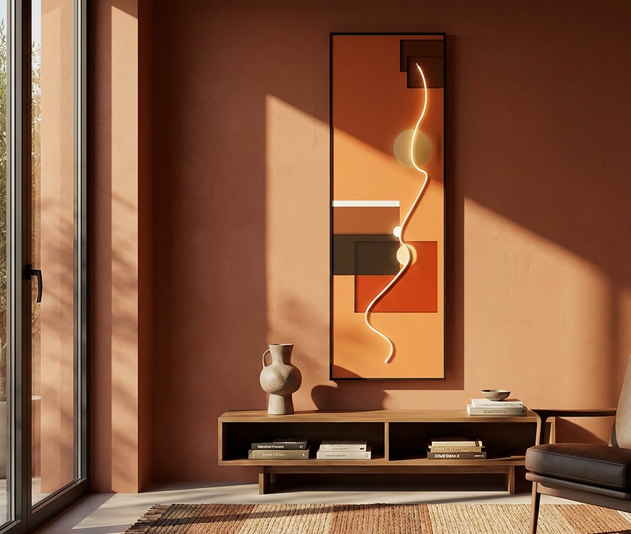 O lucrare moderna in care liniile luminoase si formele geometrice sunt puse in valoare de LED-uri integrate. Un tablou abstract ce aduce energie, miscare si design contemporan cu un efect surprinzator.Tablou imprimat pe canvasPrevazut cu lumini LEDCompozitie material: canvas, plastic, MDF.