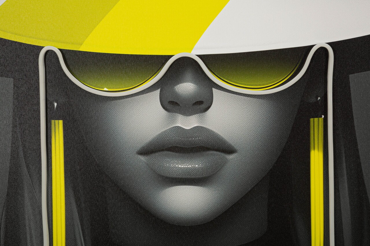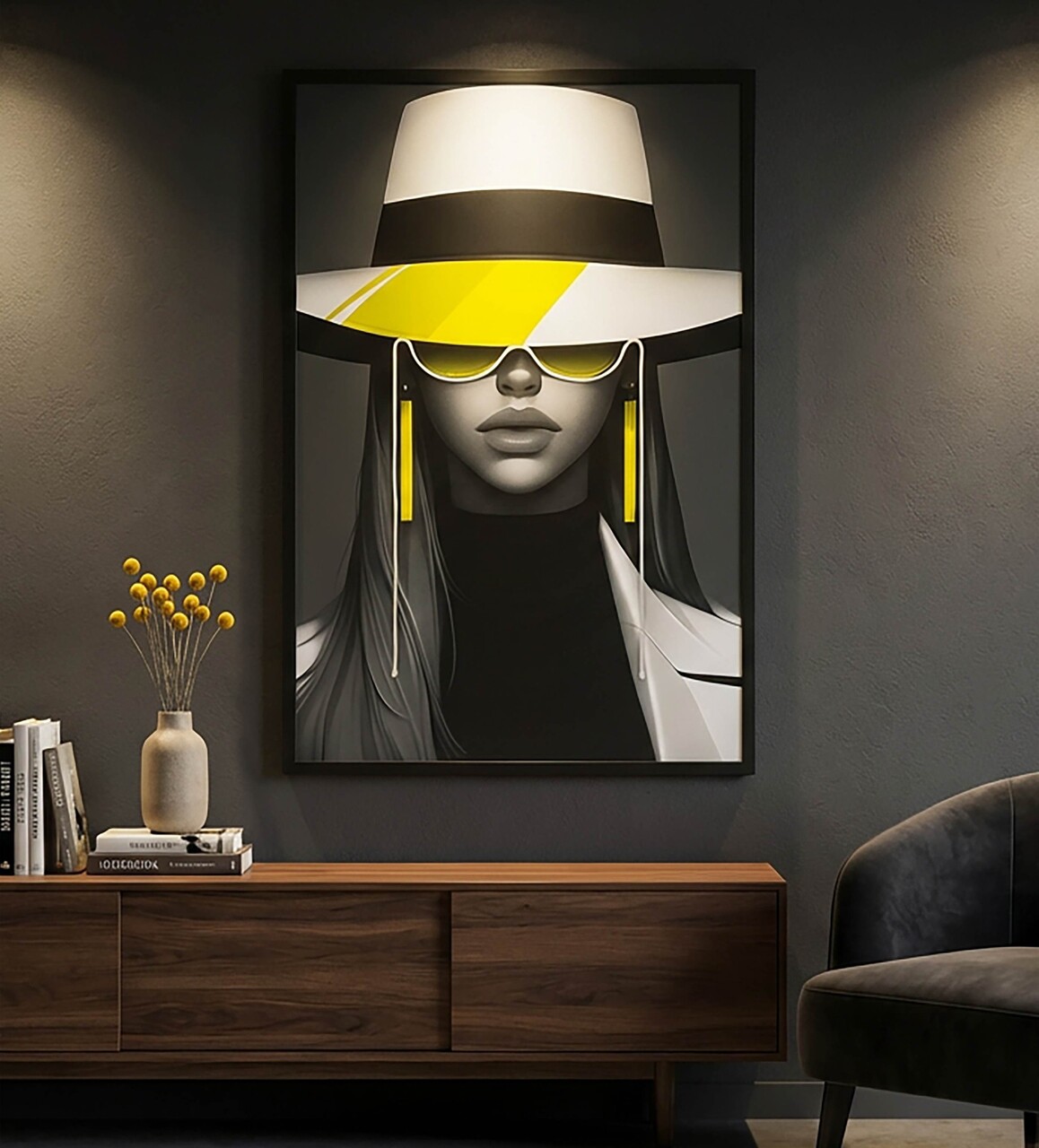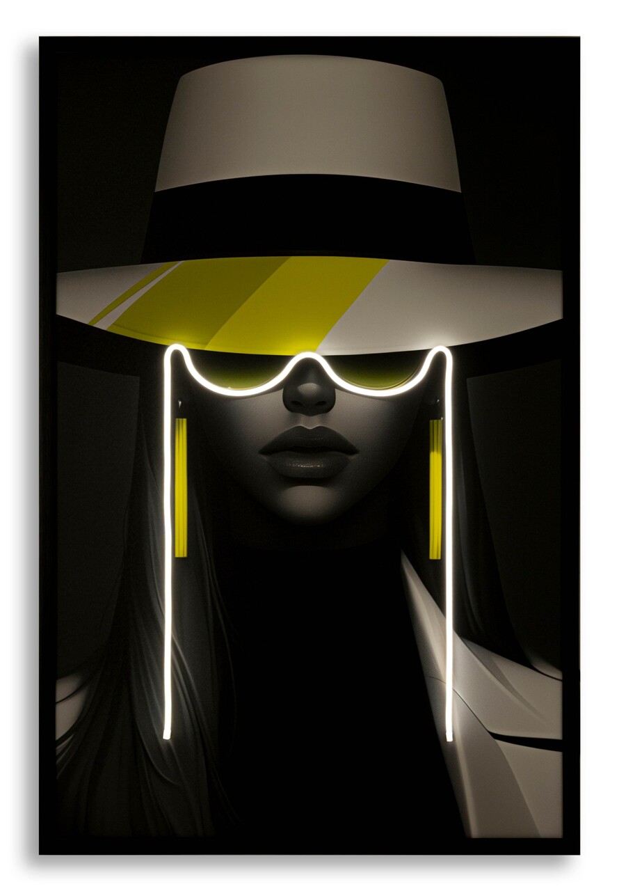 Un portret glamour alb-negru, facut si mai surprinzator de detaliile LED care lumineaza accesoriile. O combinatie perfecta intre arta si moda.Tablou imprimat pe canvasPrevazut cu lumini LEDCompozitie material: canvas, plastic, MDF.