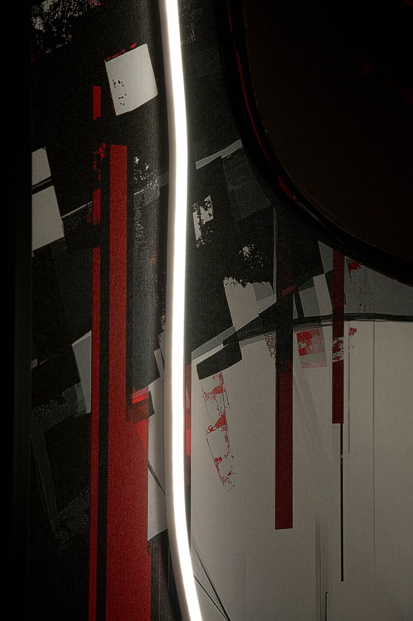 O imagine puternica si indrazneata, imbogatita cu LED-uri care traseaza linii de lumina. Efectul 3D din acril adauga profunzime si un impact vizual spectaculos.Tablou imprimat pe canvasPrevazut cu lumini LED si aplicatii 3D din acrilicCompozitie material: canvas, plastic, MDF.