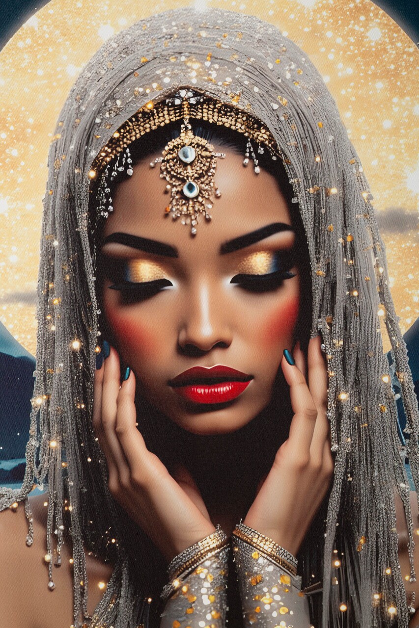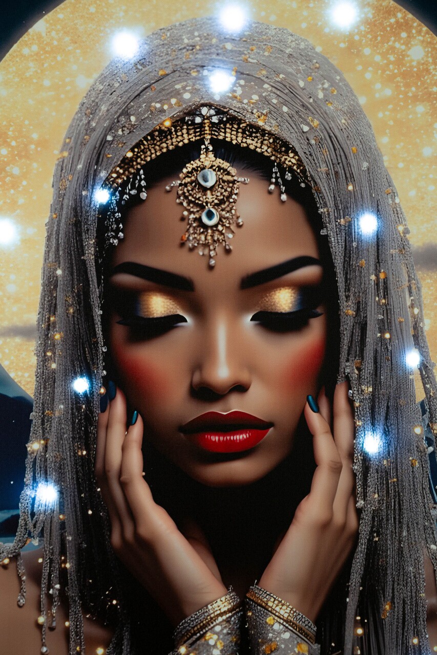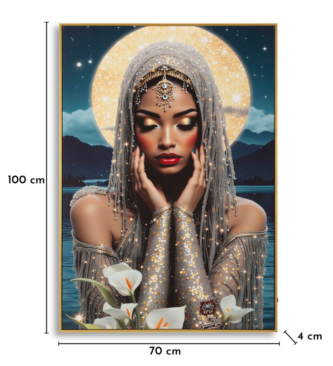 Un portret feminin luminos si fermecator, imbogatit cu detalii LED care ii amplifica aura mistica. Un tablou ce imbina arta si lumina, transformand orice spatiu intr-un loc plin de farmec.Tablou imprimat pe canvasPrevazut cu lumini LEDFunctioneaza cu 2 baterii de tip AA, neincluse.Compozitie material: lemn de brad, canvas, plastic.