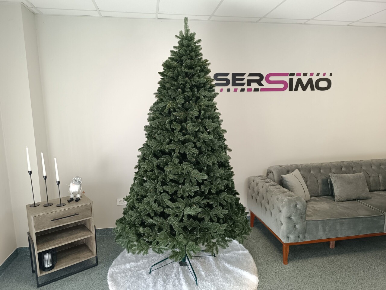 Bradul artificial Christmas Deluxe by Sersimo Canada Mix 2D+3D, cu o înălțime de 230 cm, aduce magia Crăciunului în casa ta. Cu 1656 de ramificații dense, dintre care 1268 din PVC și 388 din PE, acest brad oferă un aspect natural, fără goluri. Suportul metalic asigură stabilitate, iar designul său permite modelarea crengilor în diverse direcții. Culoarea acelor imită perfect cea a bradului natural, iar firele rezistente asigură durabilitate. Nu necesită curățare regulată, aducând bucurie și căldură în fiecare sărbătoare.