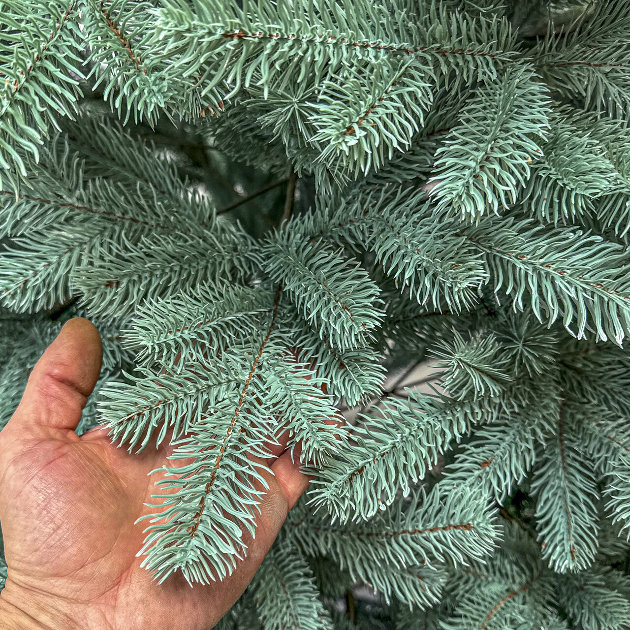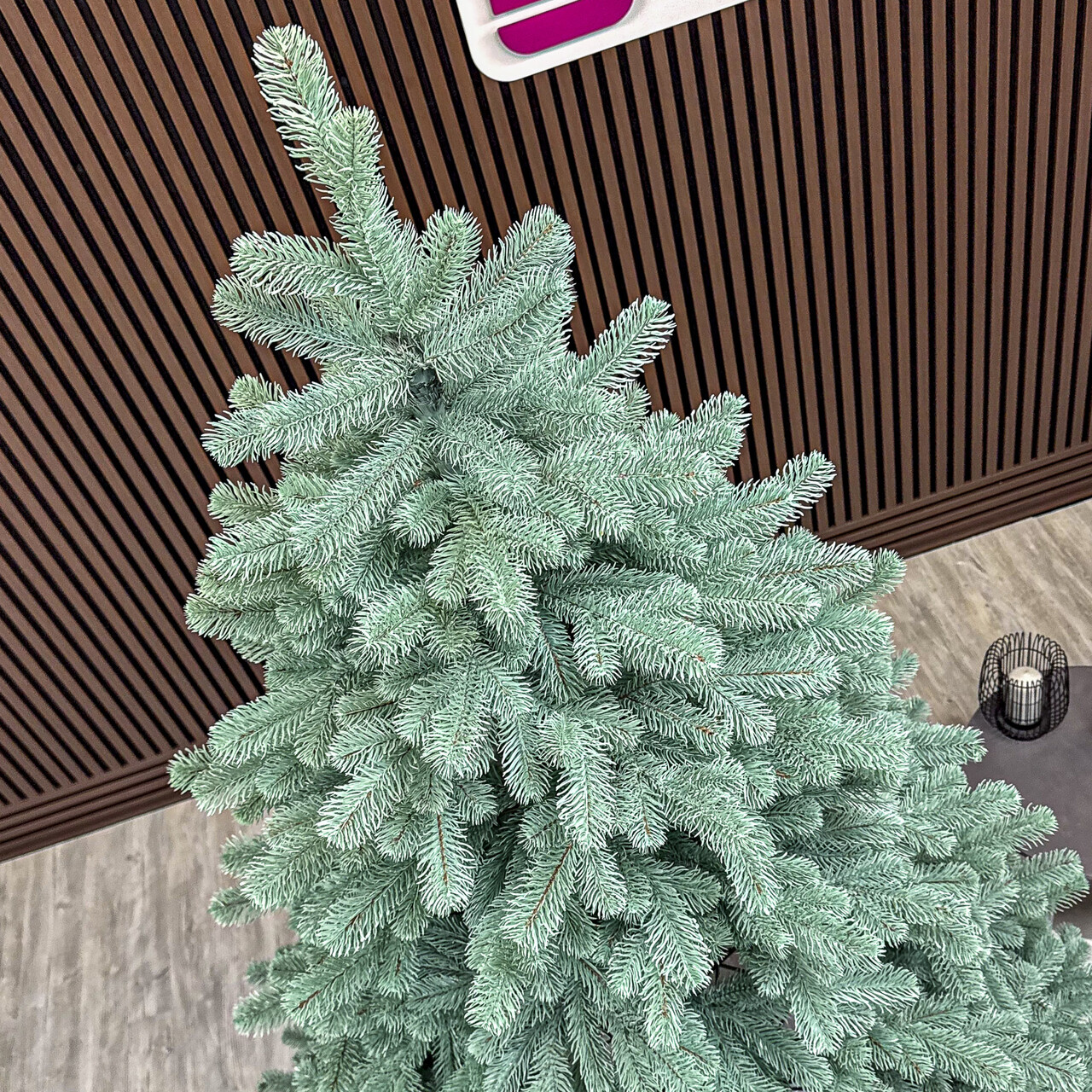 Bradul artificial Christmas Deluxe by Sersimo Kovalivska argintiu 3D, cu o înălțime de 230 cm, oferă un aspect ultra-realist, greu de distins de brazii naturali. Cu 527 de ramificații din materiale de calitate, acesta permite modelarea și decorarea ușoară, menținând totodată toate ornamentele la înălțime. Montajul este rapid, durabil și ecologic, iar suportul metalic este inclus. Construcția sa compactă facilitează depozitarea. Un element decorativ bogat în detalii, care va aduce un strop de magie și frumusețe în orice locuință.
