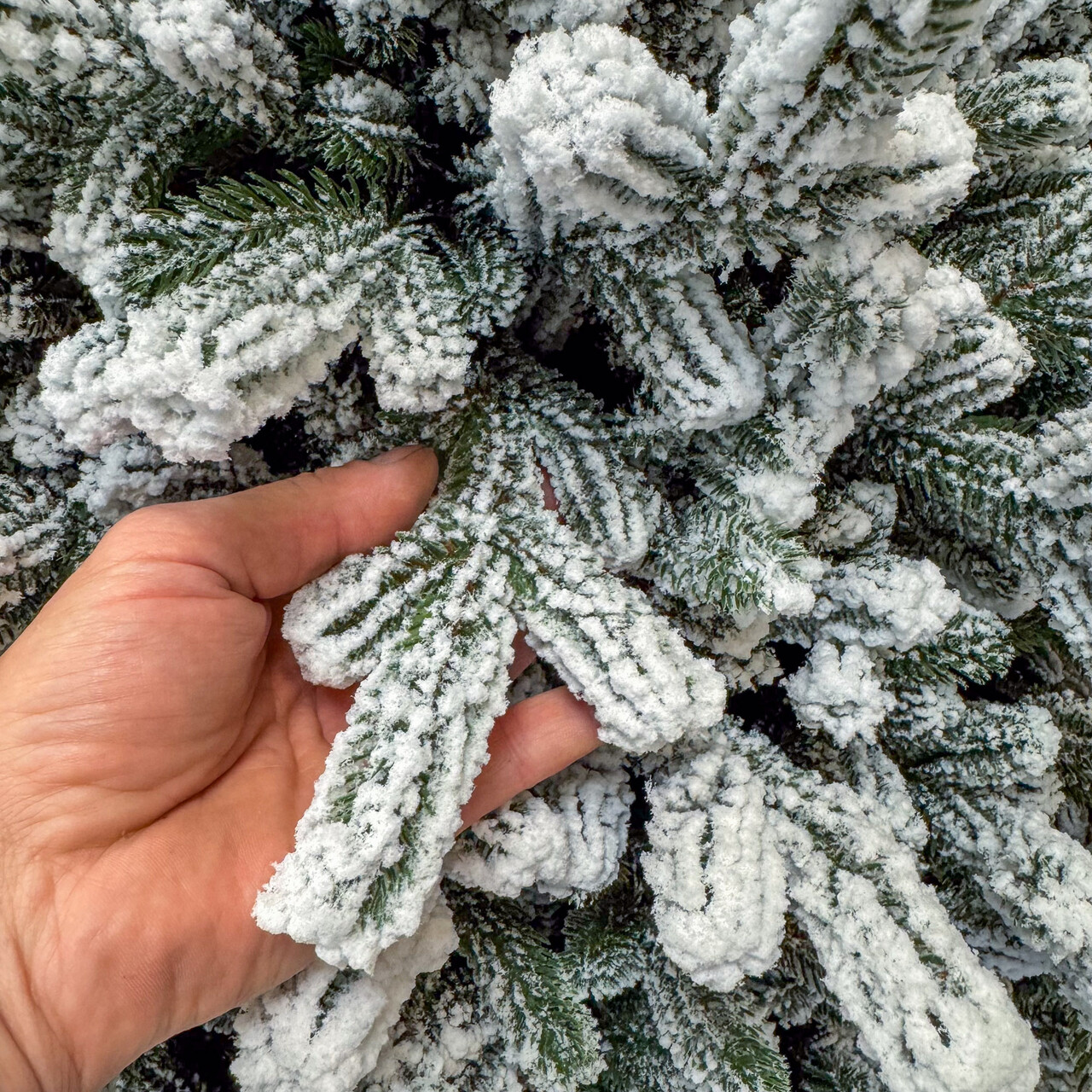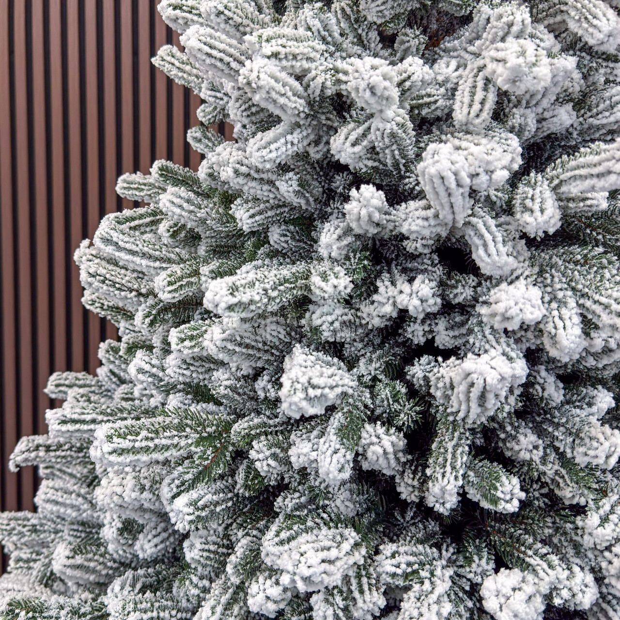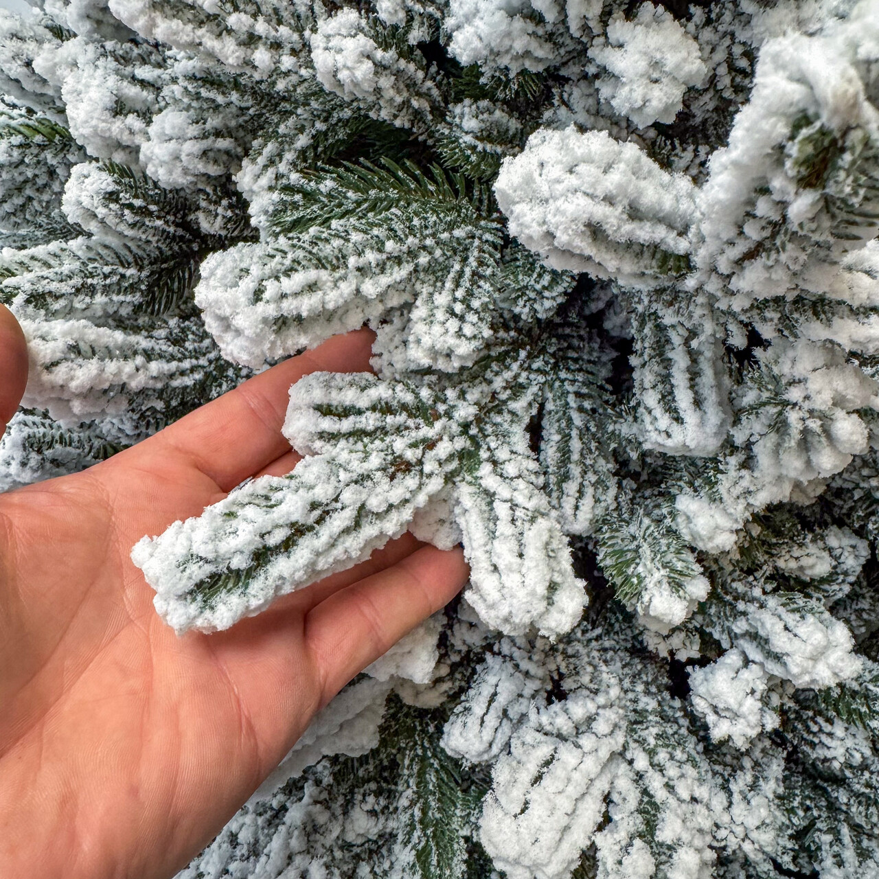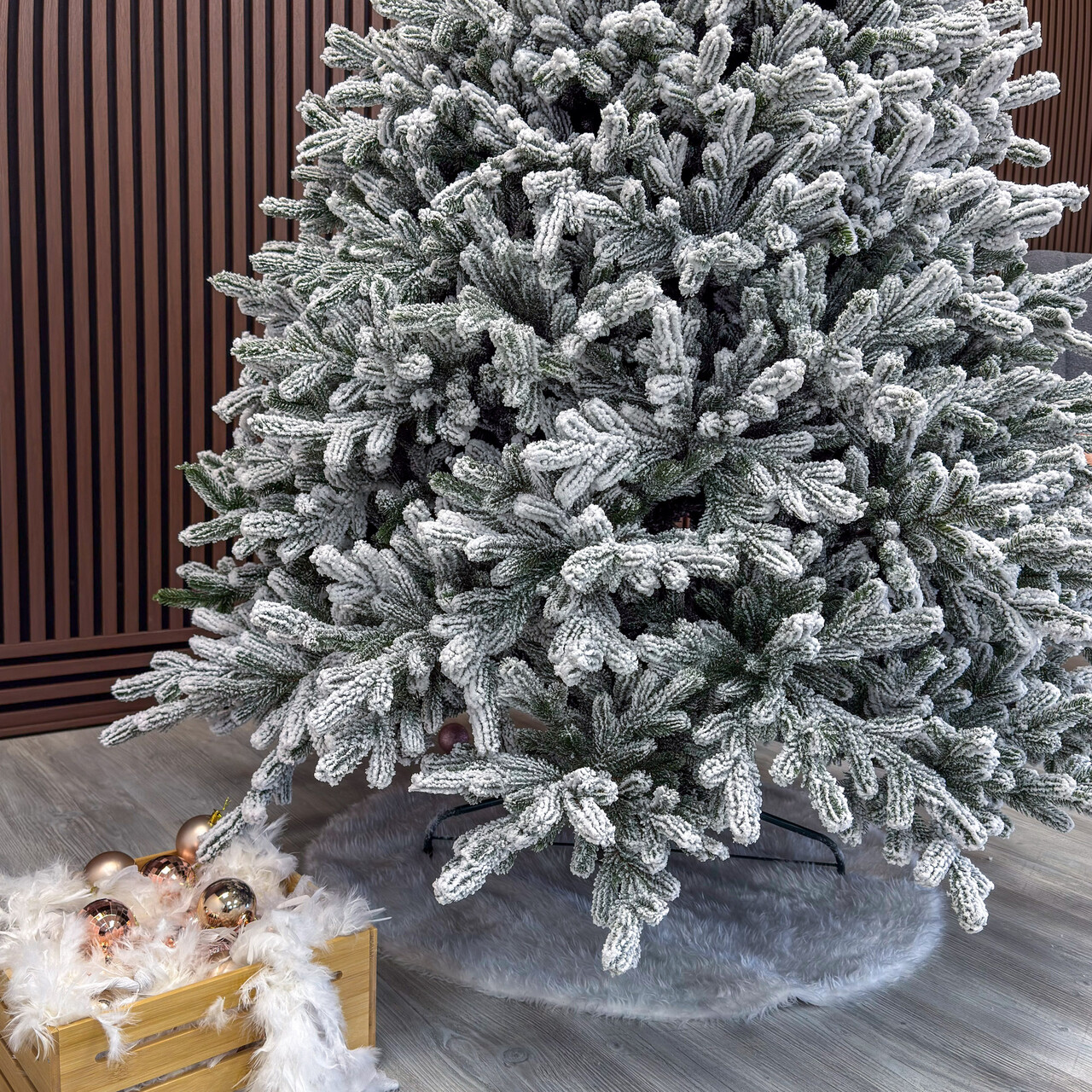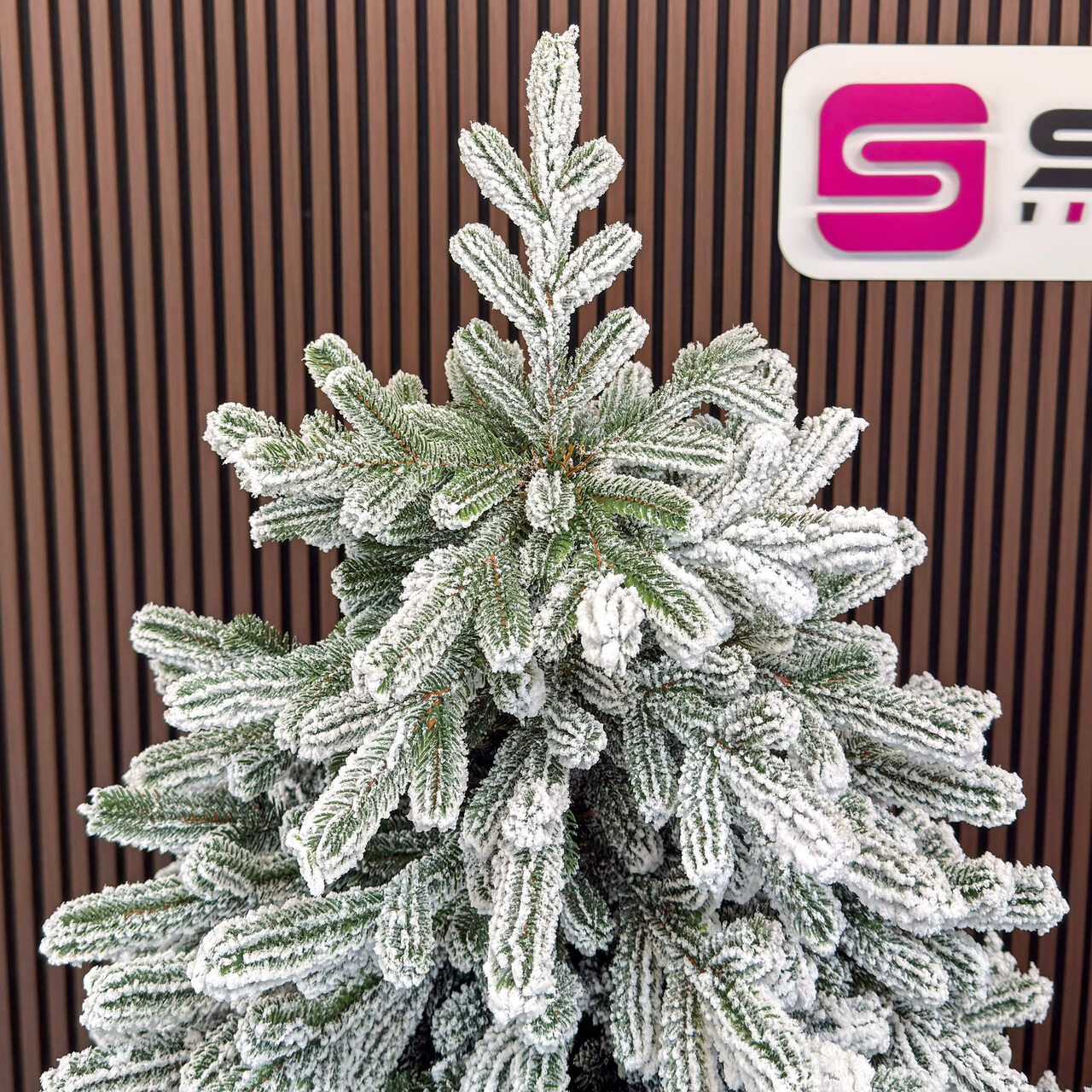 Bradul artificial Sersimo Alessandra Elite nins Mix 2D+3D, cu o înălțime de 200 cm și un diametru de 150 cm, este alegerea perfectă pentru a adăuga o notă de magie Crăciunului tău. Cu 1757 ramificații dense, dintre care 504 din material PVC și 1253 din material PE, acest brad imită perfect aspectul natural al coniferelor. Structura sa robustă, cu un suport metalic inclus, garantează stabilitate, iar sistemul de instalare tip umbrela facilitează montajul. Crengile pot fi modelate cu ușurință, iar efectul de ninsoare adaugă un farmec suplimentar, creând o atmosferă caldă și festivă în fiecare cămin.
