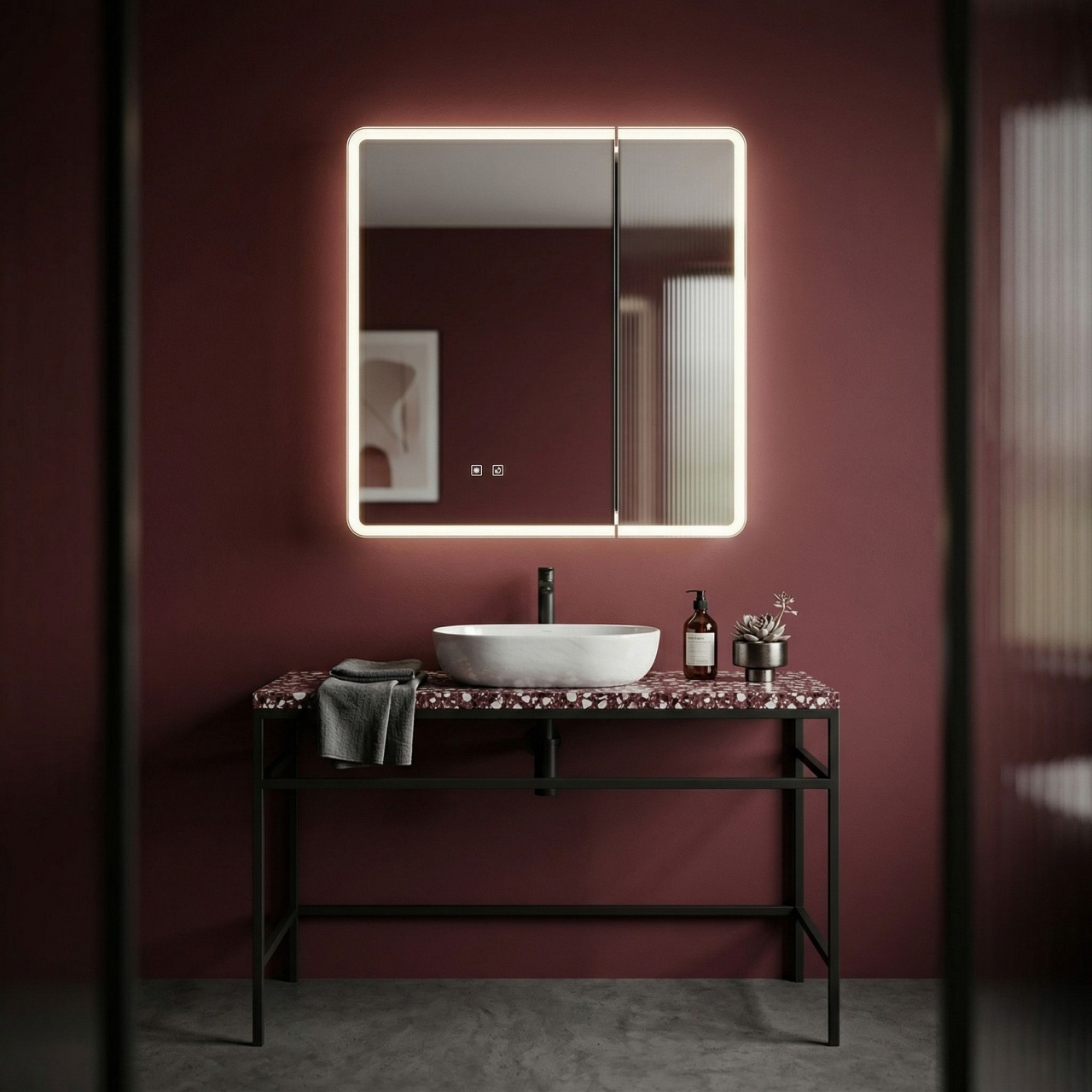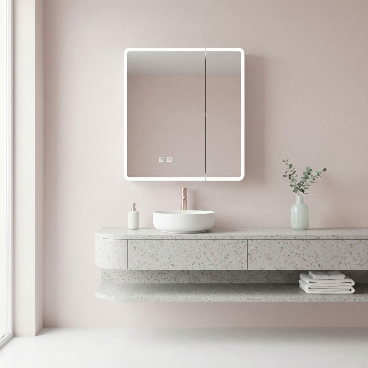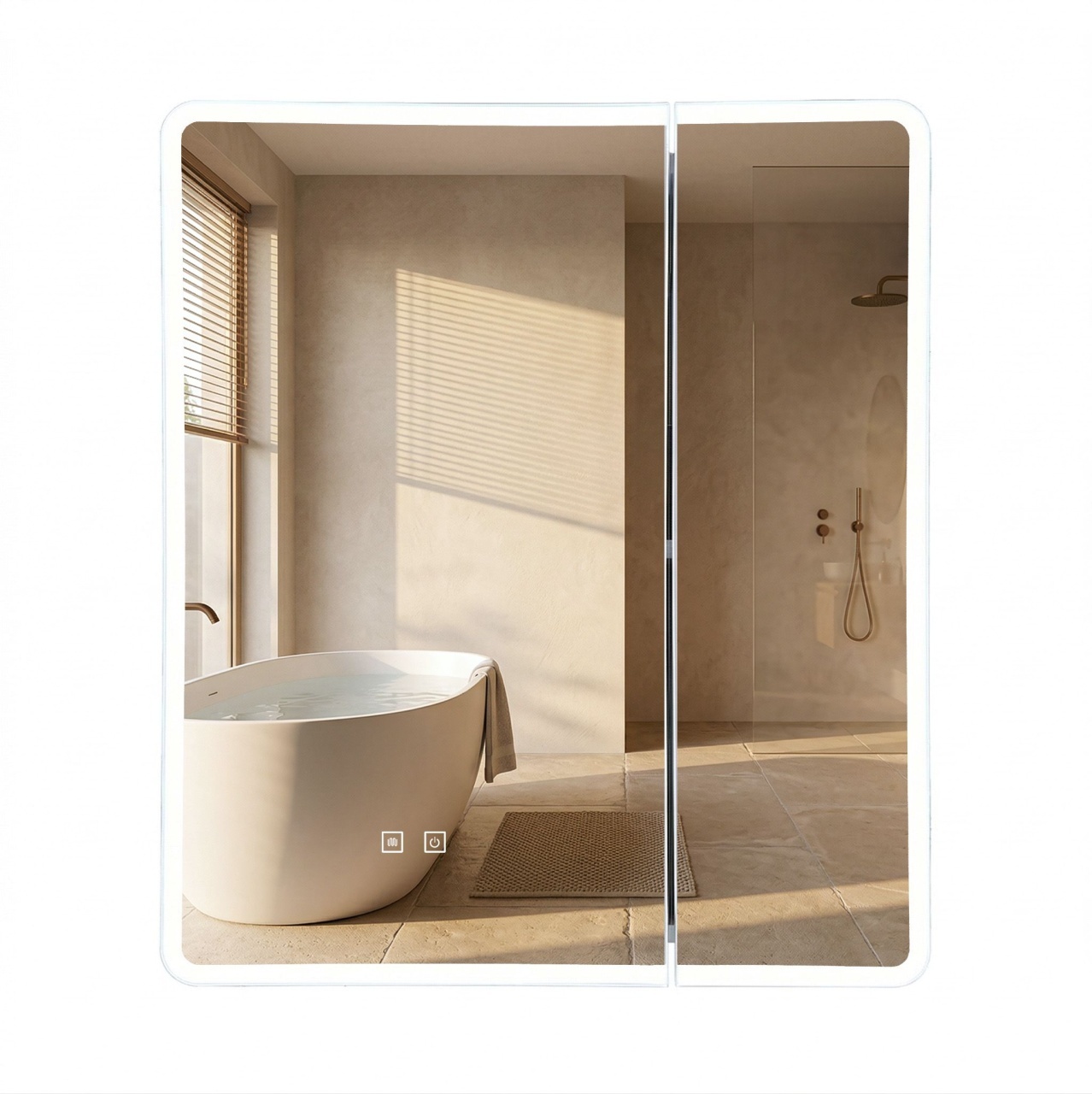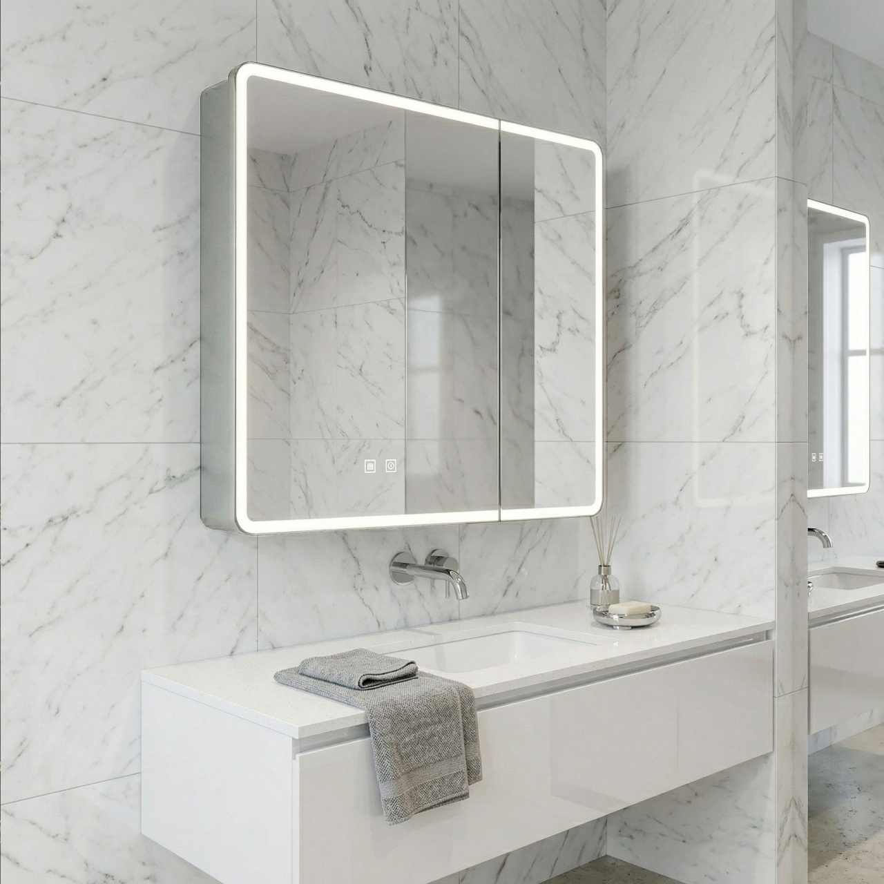 Oglinzi de baie LED cu touch și dezaburire, variate în diferite forme, modele & culori, în tendințe actuale. Funcționalitate modernă, dar și estetică plăcută pentru baia de acasă sau birou.