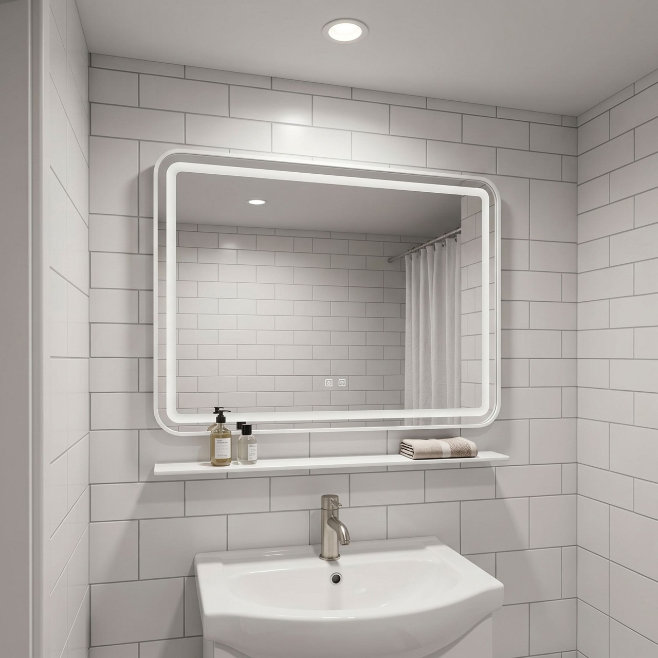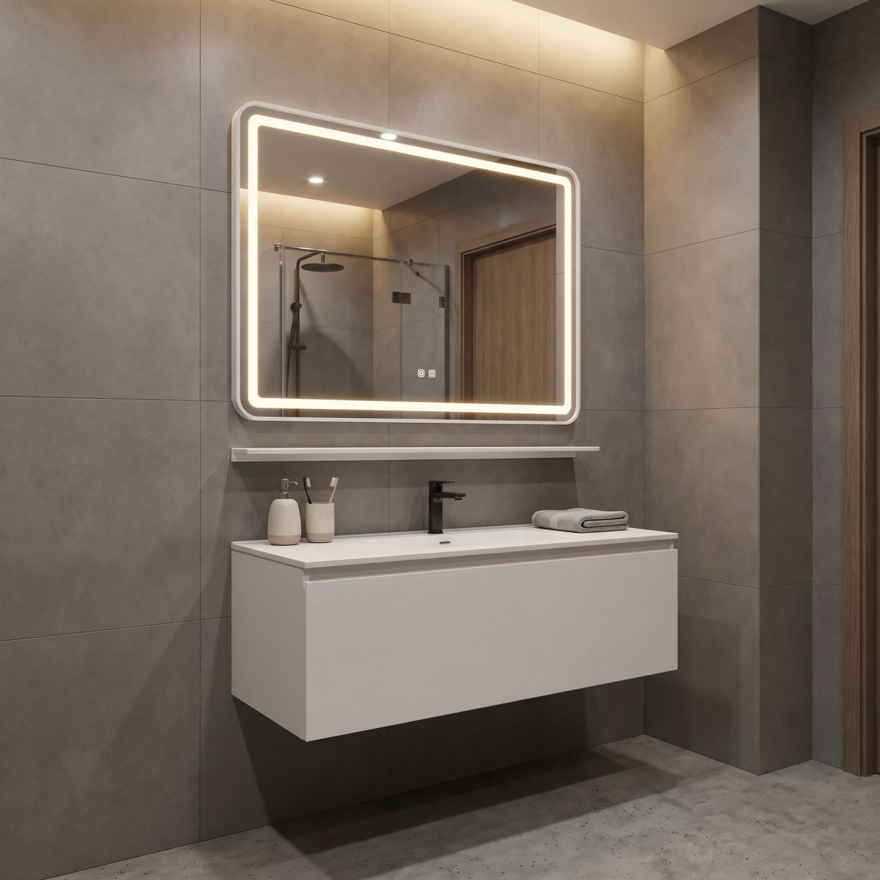 Oglinzi de baie LED cu touch și dezaburire, variate în diferite forme, modele & culori, în tendințe actuale. Funcționalitate modernă, dar și estetică plăcută pentru baia de acasă sau birou.