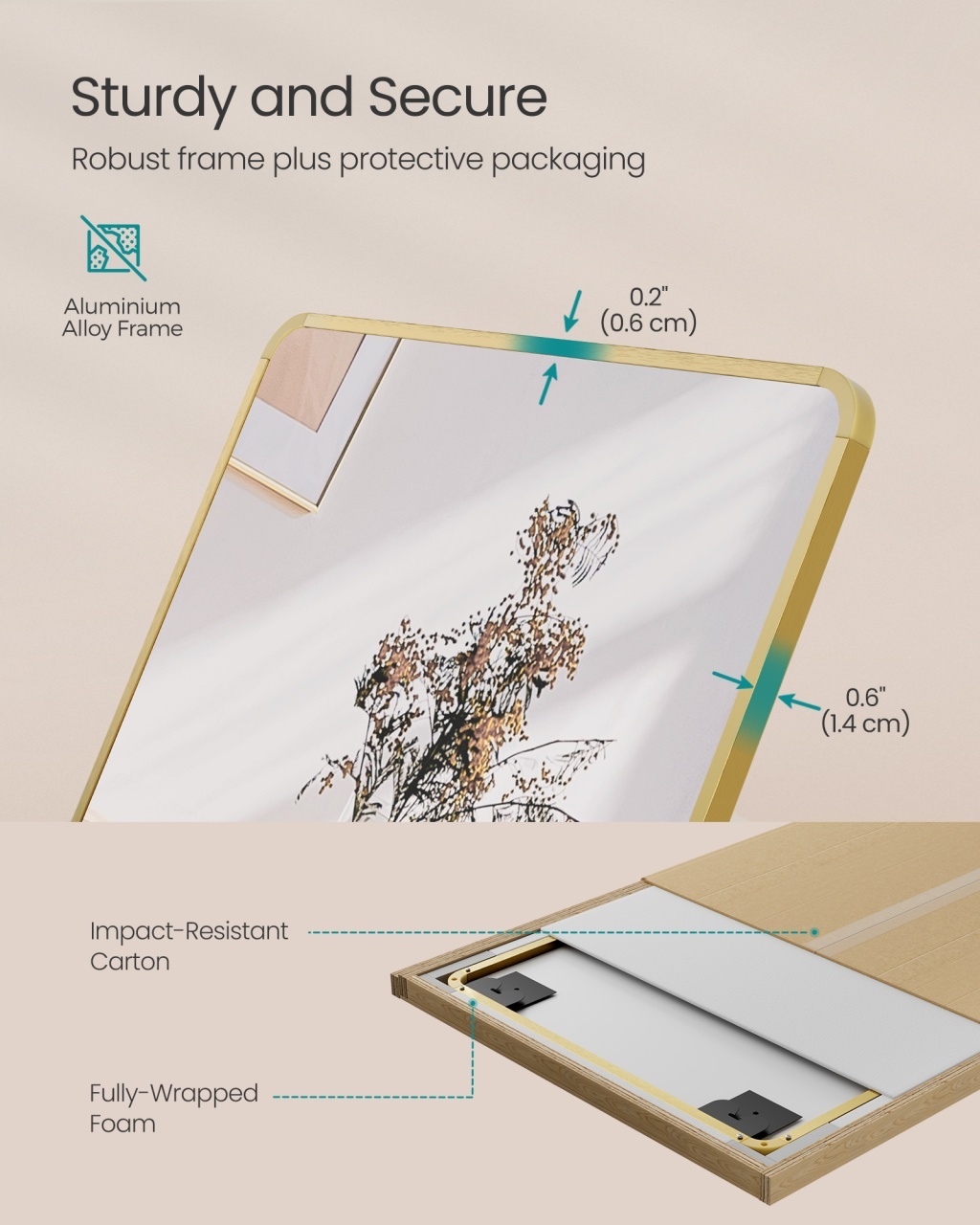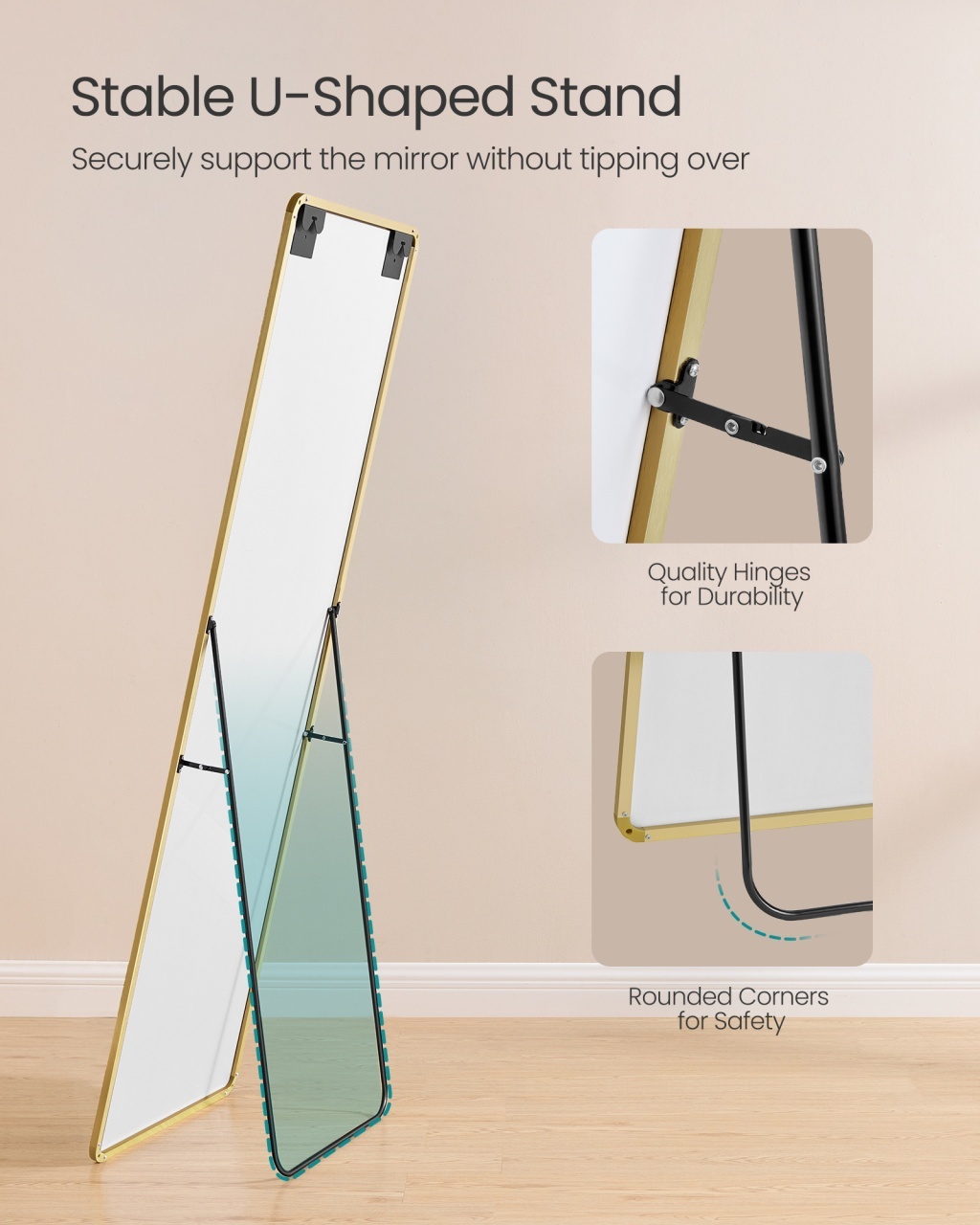 Oglinda de podea Songmics 160 x 50 — Reflexie completă și eleganță durabilă Design modern și materiale de calitate Cu o siluetă rotunjită într-un dreptunghi alungit și un finisaj în auriu , această oglindă impune o prezență discretă dar sofisticată în orice încăpere. Cadrul construit din aliaj de aluminiu păstrează aspectul impecabil în timp, iar sticla securizată, protejată de un strat de siguranță, conferă o senzație tactilă clară și o estetică premium care îmbogățește decorul. Datorită dimensiunilor de 160 x 50 cm, vei beneficia de o privire completă de la cap până la picioare, transformând ritualul de pregătire într-un moment de rafinament și funcționalitate. Funcționalitate și organizare Oglinda oferă o vedere full-body care simplifică pregătirea zilnică și îți optimizează deciziile vestimentare, astfel încât ieșirile să fie mereu în armonie cu stilul tău. Datorită standului robust și designului ușor de poziționat, produsul se potrivește cu ușurință în dormitor , hol sau camera de dressing , aducând o notă de versatilitate și ordine vizuală în spațiul tău. Astfel, oglinda nu doar reflectă imaginea, ci contribuie la organizarea și optimizarea ambianței locuinței. Montaj și întreținere Produsul este conceput pentru a fi ușor de mutat și poziționat, iar pentru stabilitate este esențial să te asiguri că standul este complet deschis înainte de utilizare, astfel sporind siguranța și stabilitatea. Curățarea sticlei se face delicat, cu o lavetă din microfibră și soluție neutră, evitându-se substanțele abrazive care pot afecta finisajul cadrului; pentru elementele din MDF și metal recomandăm ștergerea cu o lavetă uscată sau ușor umedă, pentru a păstra durabilitatea și finisajul . Dacă oglinda se deteriorează accidental, nu atinge fragmentele cu mâinile goale și urmează recomandările de manipulare pentru a proteja siguranța familiei și a casei. Comandă acum Adaugă acum o notă de eleganță și funcționalitate în casa ta — comandă oglinda și bucură‑te de o reflexie completă în fiecare zi. Detalii tehnice complete Dimensiuni și greutate Dimensiuni produs: 160 x 50 cm Greutate produs: 6.8 kg Materiale și caracteristici Material corp: Sticlă securizată și cadru din aliaj de aluminiu, cu elemente din MDF, oțel și plastic Culoare: Auriu Număr pachete: 1 Montaj și pachet Stare asamblare: Neasamblat Conținut pachet: 1 x Oglindă de podea, Accesorii de montaj, Instrucțiuni Stil și origine Stil: Modern Destinație recomandată: Dormitor, Cameră de dressing, Hol, Living Informații importante Asigură-te că standul este complet deschis pentru a menține oglinda stabilă și evită manevrele bruște la despachetare pentru a preveni deteriorarea; scoate oglinda din ambalaj cu atenție pentru a nu o zgâria. Dacă oglinda se sparge accidental, nu atinge fragmentele cu mâinile goale și îndepărtează zona în condiții de siguranță, urmând recomandările producătorului pentru manipulare și eliminare.