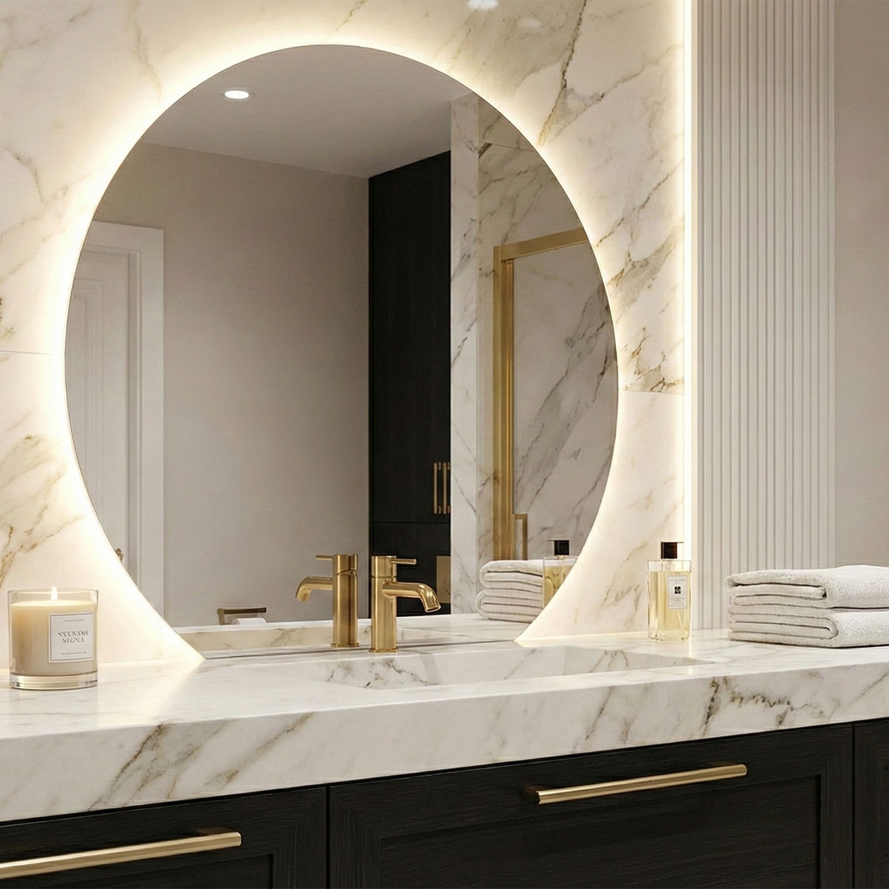 Oglinzi de baie LED cu touch și dezaburire, variate în diferite forme, modele & culori, în tendințe actuale. Funcționalitate modernă, dar și estetică plăcută pentru baia de acasă sau birou.