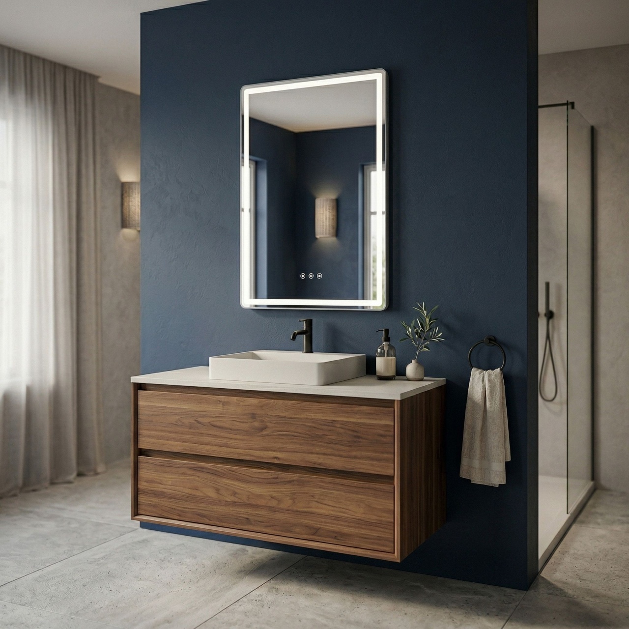 Căutați un element spectaculos care să ofere interiorului dumneavoastră o strălucire subtilă și un caracter modern? Apreciați eleganța în baia dumneavoastră cu oglinda dreptunghiulară LED Marlo 70×50 cm. Aceasta este combinația ideală între stilul minimalist și funcționalitatea avansată, care va încânta orice utilizator. Suprafața de înaltă calitate cu colțuri ușor rotunjite nu doar mărește optic spațiul, ci asigură și condițiile ideale pentru îngrijirea zilnică.Iluminare LED integrată pe suprafață – o ramă luminoasă lată în jurul marginilor emite o lumină puternică și uniformă, care iluminează ideal fața în timpul machiajului sau bărbieritului.Strălucire subtilă pe perete (iluminare Ambient) – oglinda dispune de iluminat suplimentar în spatele corpului, care creează un efect atmosferic de „levitare” pe perete și adaugă confort.Colțuri rotunjite – liniile fluide aduc în interior lejeritate și un design modern, fiind un accent decorativ distinctiv.Covoraș încălzit integrat (Anti-Fog) – previne aburirea oglinzii, garantând o reflexie clară chiar și imediat după o baie fierbinte.Formă dreptunghiulară modernă – dimensiunile universale de 70×50 cm fac ca oglinda să arate perfect deasupra oricărui lavoar.Calitate înaltă a execuției – finisajele precise și materialele rezistente la umiditate garantează durabilitatea și fiabilitatea în condițiile dificile din baie.Funcție de dimare – reglarea inteligentă a intensității luminii permite adaptarea luminozității la nevoile actuale, de la iluminat puternic de lucru la o penumbră relaxantă. Inalime: 700 Latime : 500 Adâncime: 25 Iluminare LED: Iluminare LED Formă: Dreptunghiular Anti-aburire: Anti-aburire Model: MARLO Putere: 12 Garantie: 24 luni
