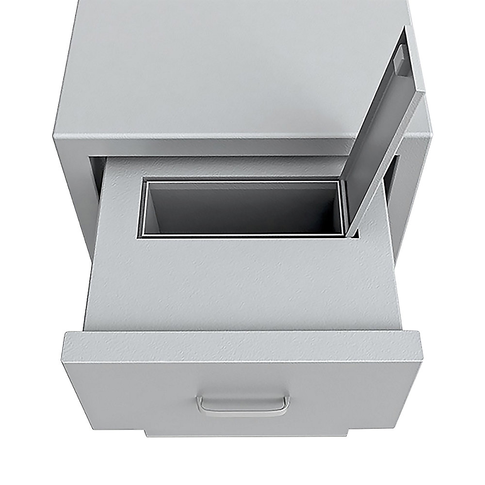 Seiful cu sertar deschis pentru introducerea valorilor este soluția ideală pentru păstrarea în siguranță a bunurilor dumneavoastră. Cu o dimensiune compactă de 950 x 590 x 550 mm și o ușă posterioară, acest seif oferă un acces facil și rapid la bunurile depozitate. Clasificat în clasa ECB-S D-II, asigură un nivel ridicat de securitate, protejându-vă banii, actele și bijuteriile. Designul său practic și robust face din acest seif un aliat de încredere în protejarea valorilor dumneavoastră.