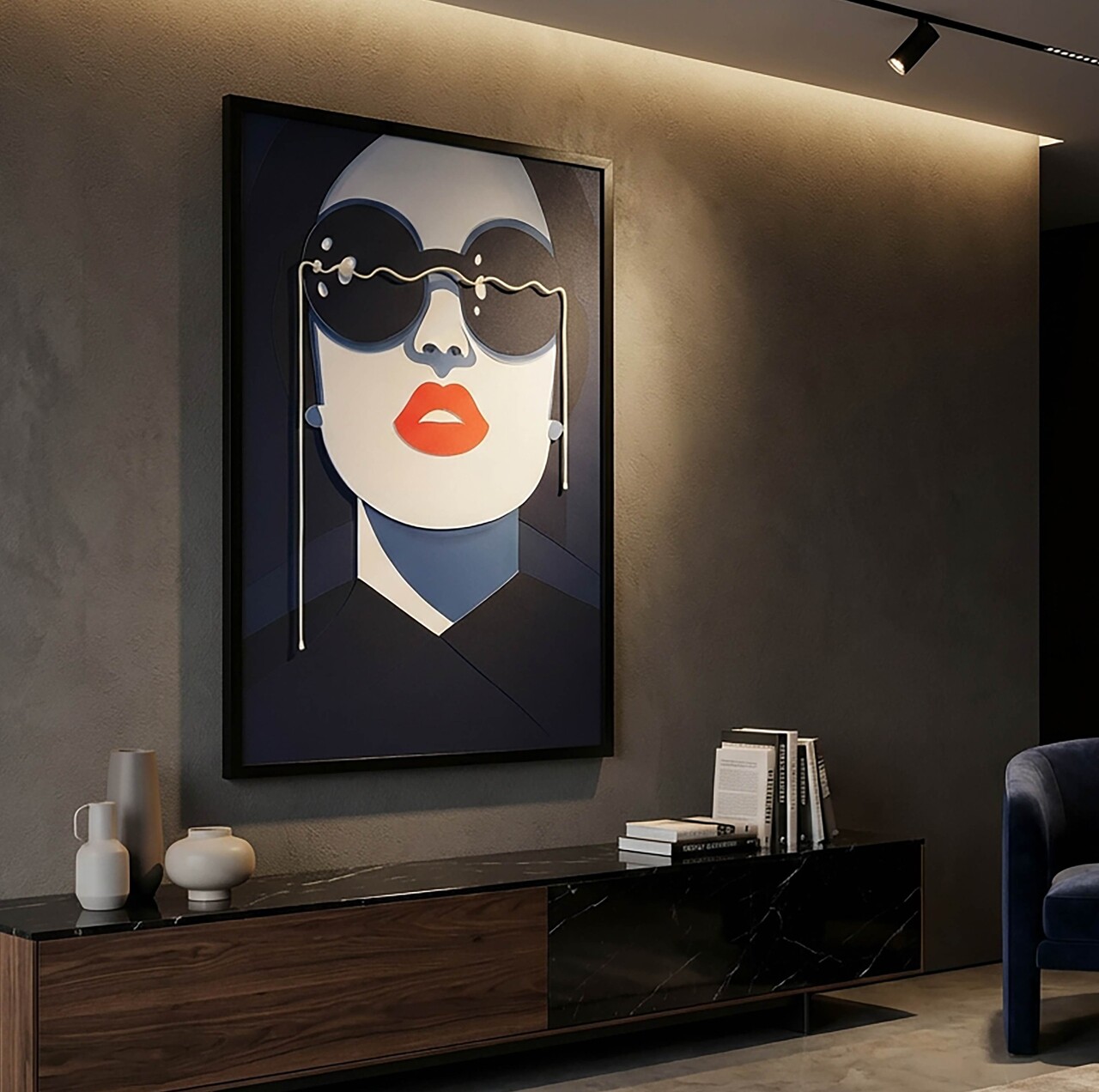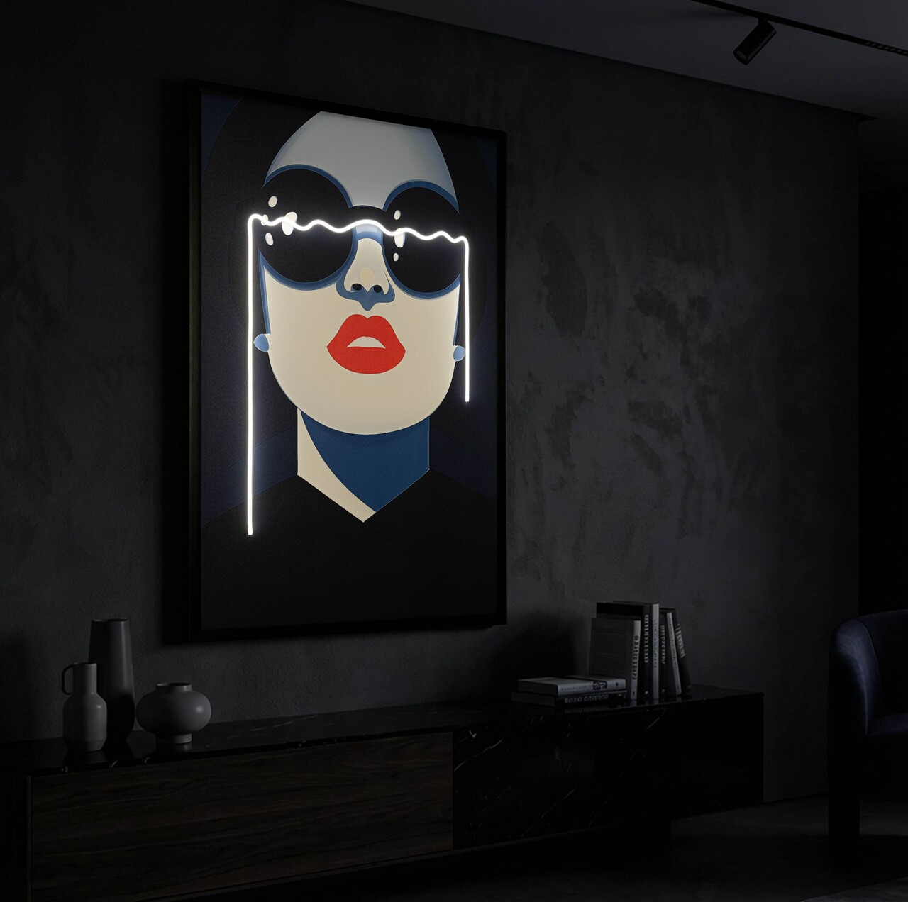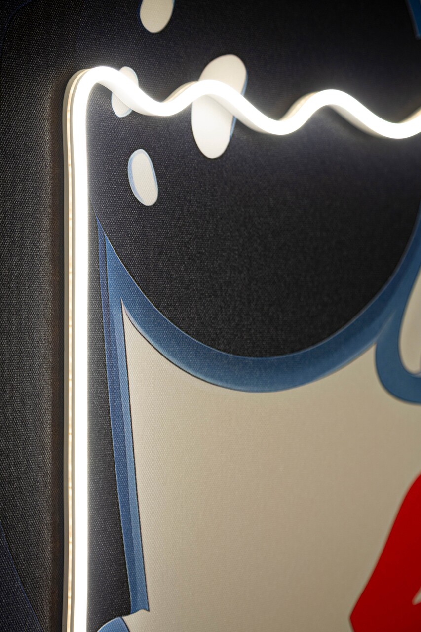 Un chip feminin pop si captivant, in care LED-urile accentueaza contrastul dintre rosu si albastru. O lucrare cu personalitate puternica, ce aduce un stil urban-chic.Tablou imprimat pe canvasPrevazut cu lumini LEDCompozitie material: canvas, plastic, MDF.