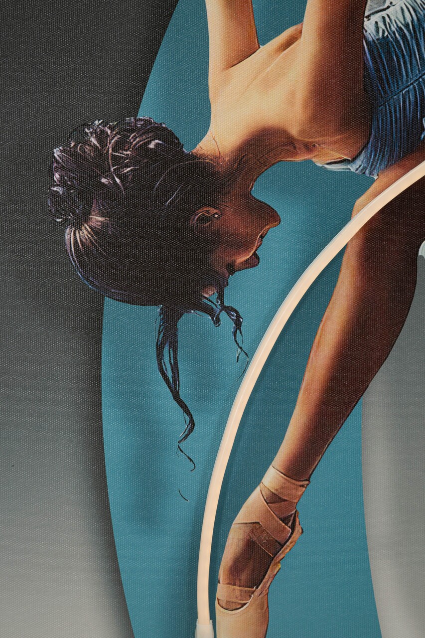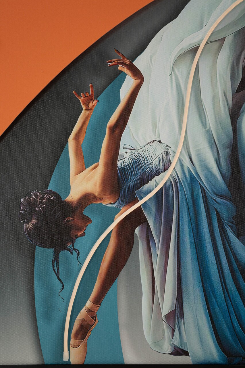 O balerina eleganta suspendata intr-o miscare armonioasa, intensificata de lumina LED si detalii tridimensionale. Un tablou ce aduce dinamism si rafinament.Tablou imprimat pe canvasPrevazut cu lumini LED si aplicatii 3D din acrilicCompozitie material: canvas, plastic, MDF.