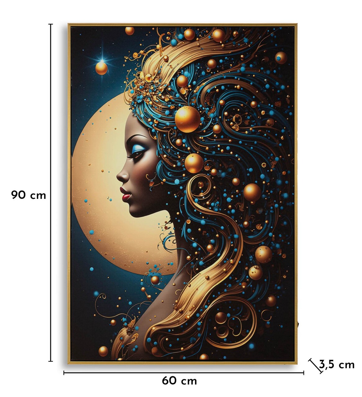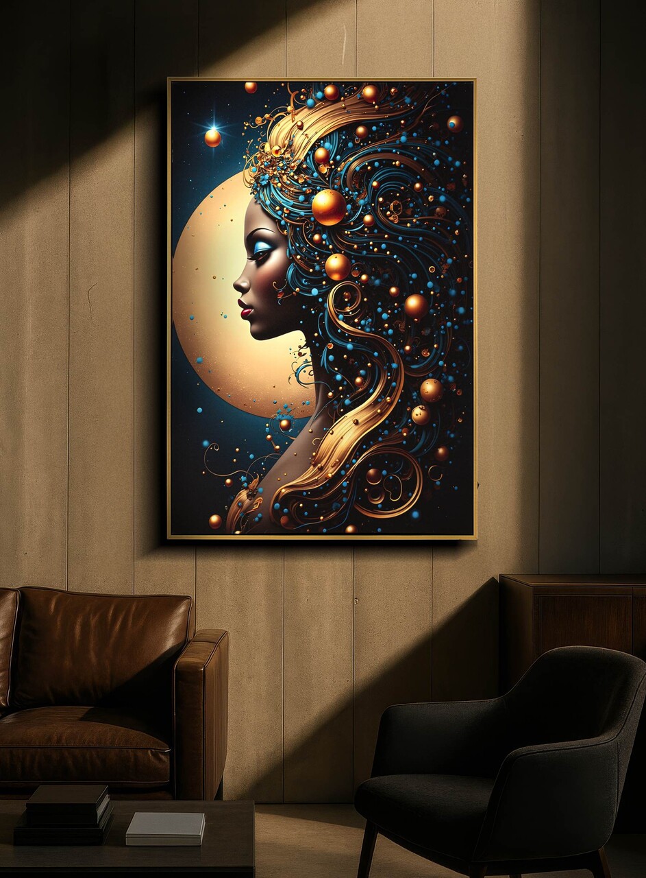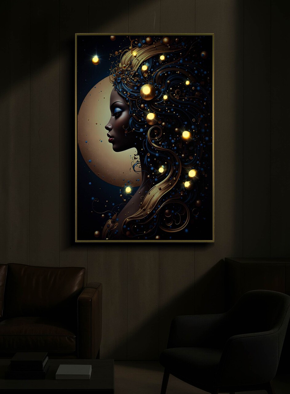 O varianta intensa si scenografica, in care detaliile LED accentueaza reflexiile aurii si eleganta subiectului. O lucrare ce imbina misterul si lumina in perfecta armonie.Tablou imprimat pe canvasPrevazut cu lumini LEDFunctioneaza cu 2 baterii de tip AA, neincluse.Compozitie material: lemn de brad, canvas, plastic.