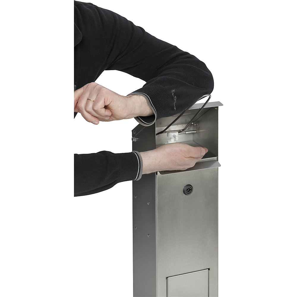Dozatorul de dezinfectant pentru mâini Var este soluția perfectă pentru exterior, combinând utilitatea cu un design elegant. Acesta include un coș de gunoi de 5 litri, oferind un mod eficient de a menține curățenia și igiena în spațiile publice. Fabricat din materiale rezistente, dozatorul este ideal pentru utilizarea frecventă și este ușor de întreținut. Culoarea albă îi conferă un aspect modern, integrându-se perfect în orice mediu. Asigură-te că tu și cei din jur aveți acces rapid la dezinfectantul necesar pentru o protecție optimă.