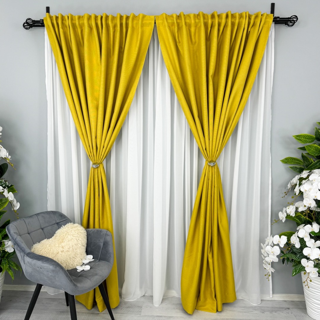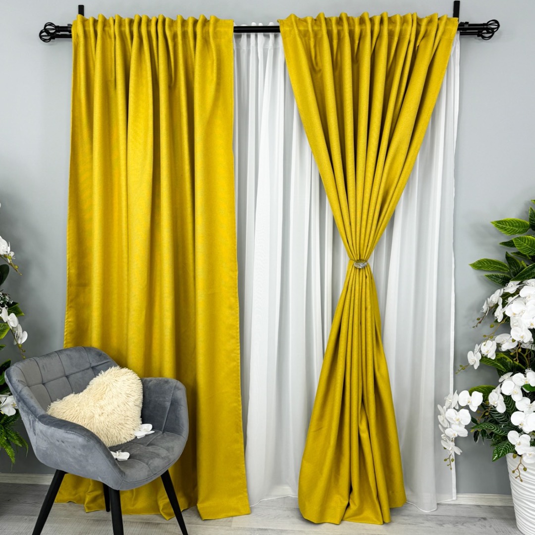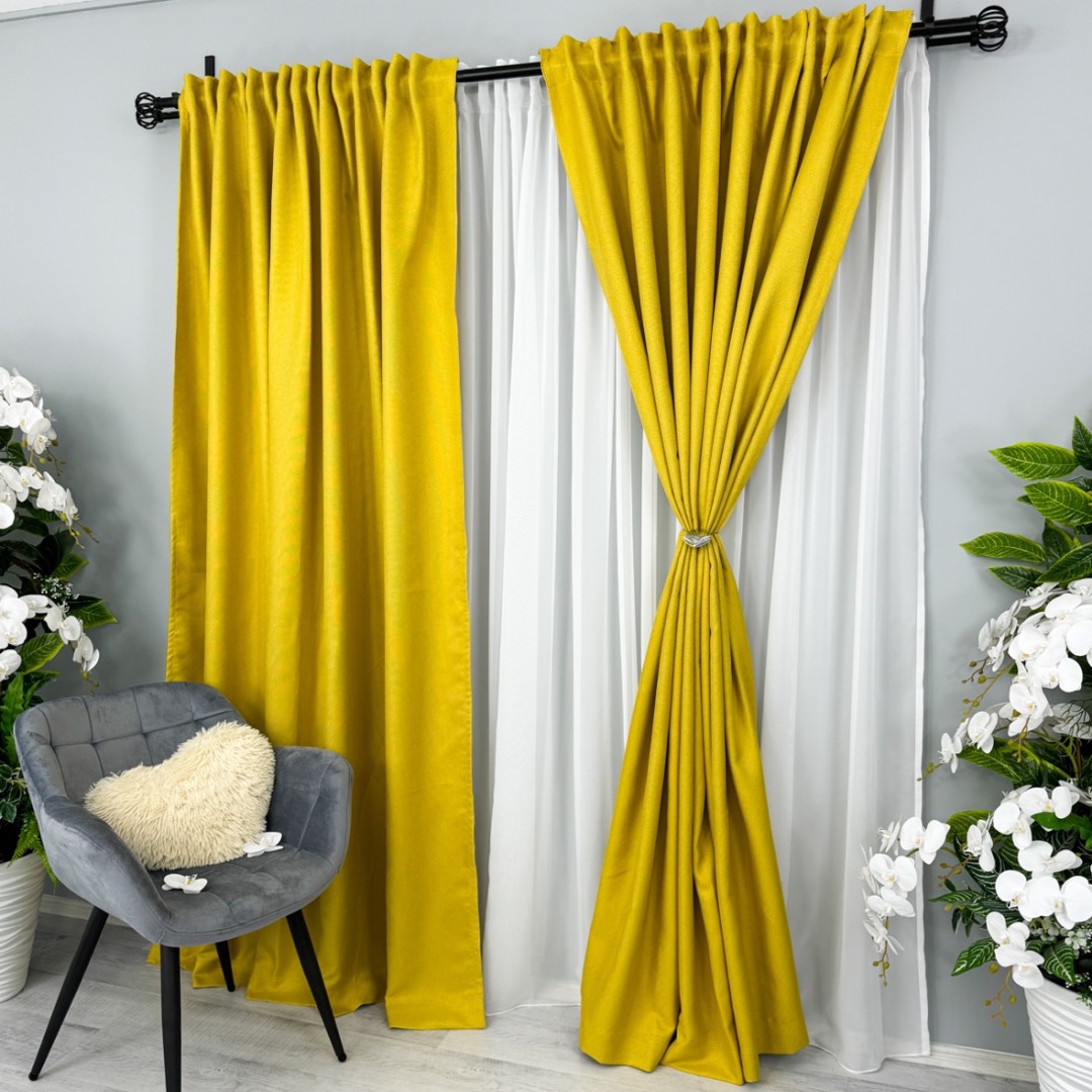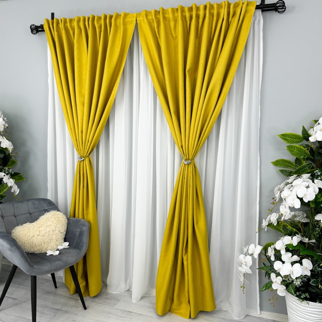 Set 2 bucati de Draperie HoReCa TEXTURATA tip IN Galben - 2m latime x 2.32m inaltime cu rejansa pt bara