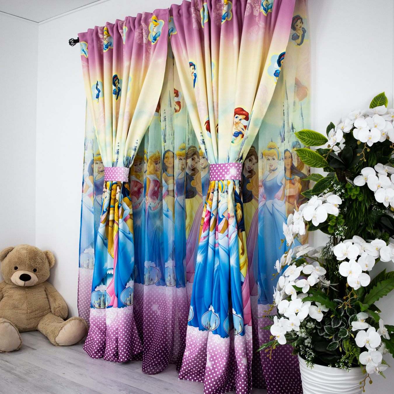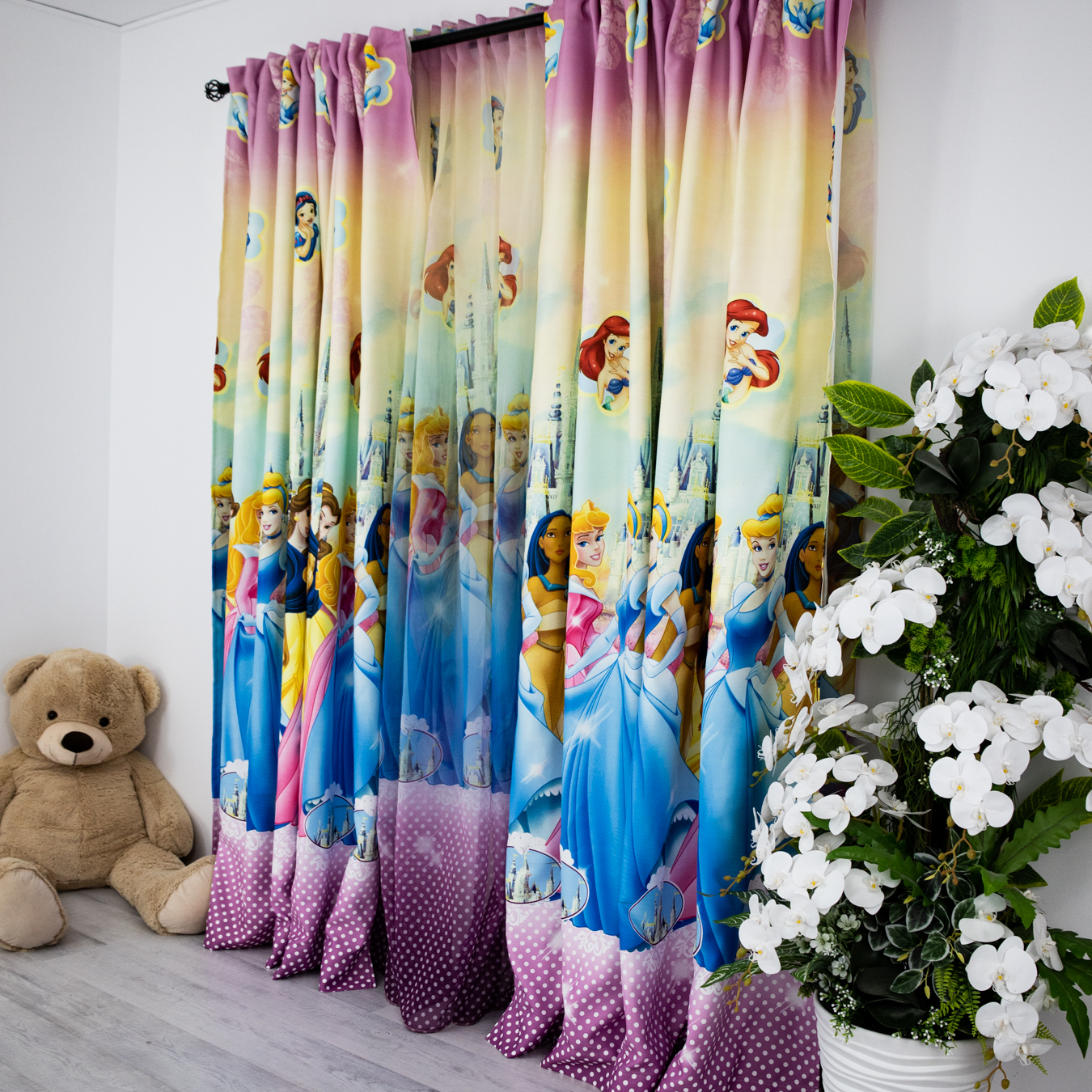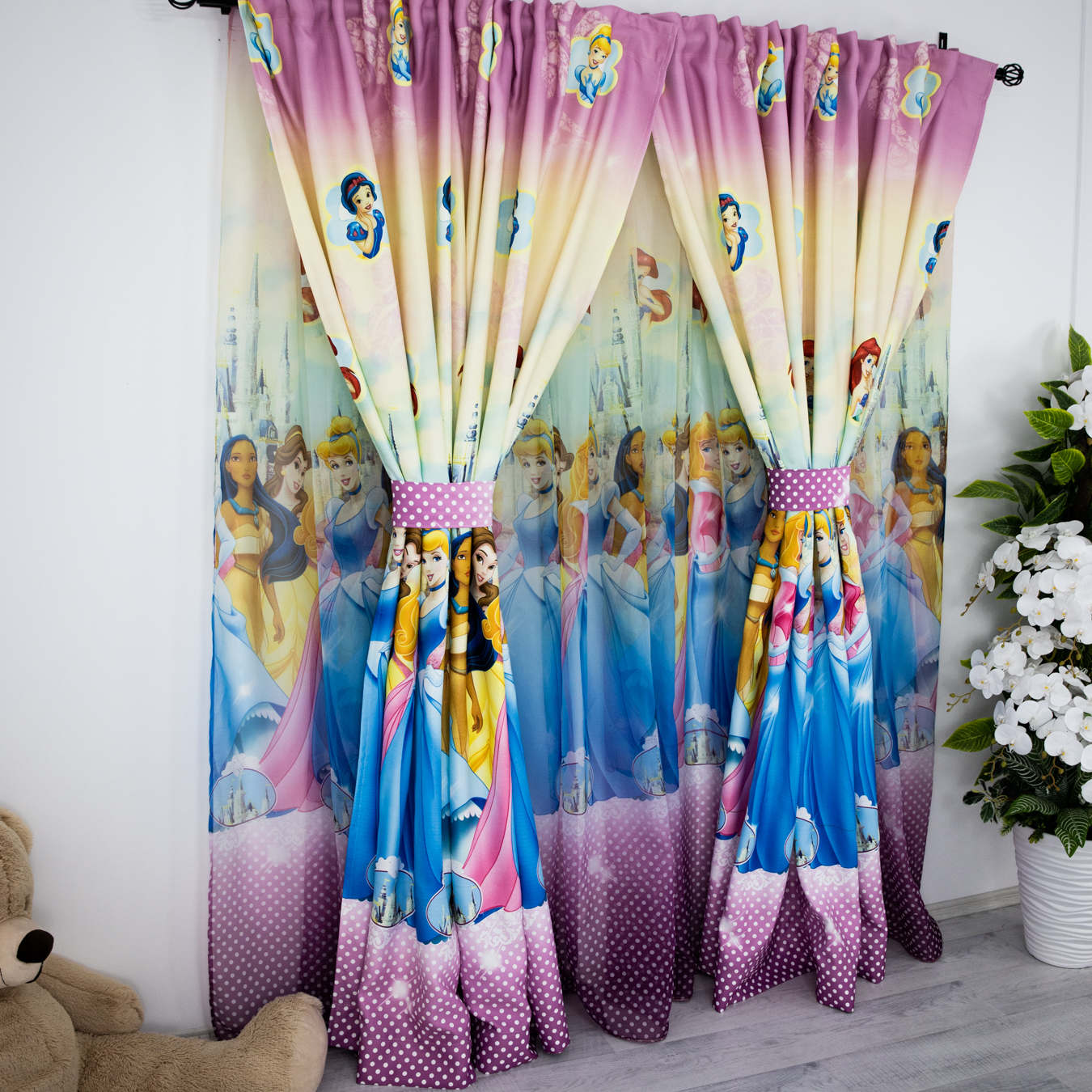 Set 2 bucati Draperie Satinata pentru copii printese 2m latime x 2.32m inaltime cu rejansa pentru bara