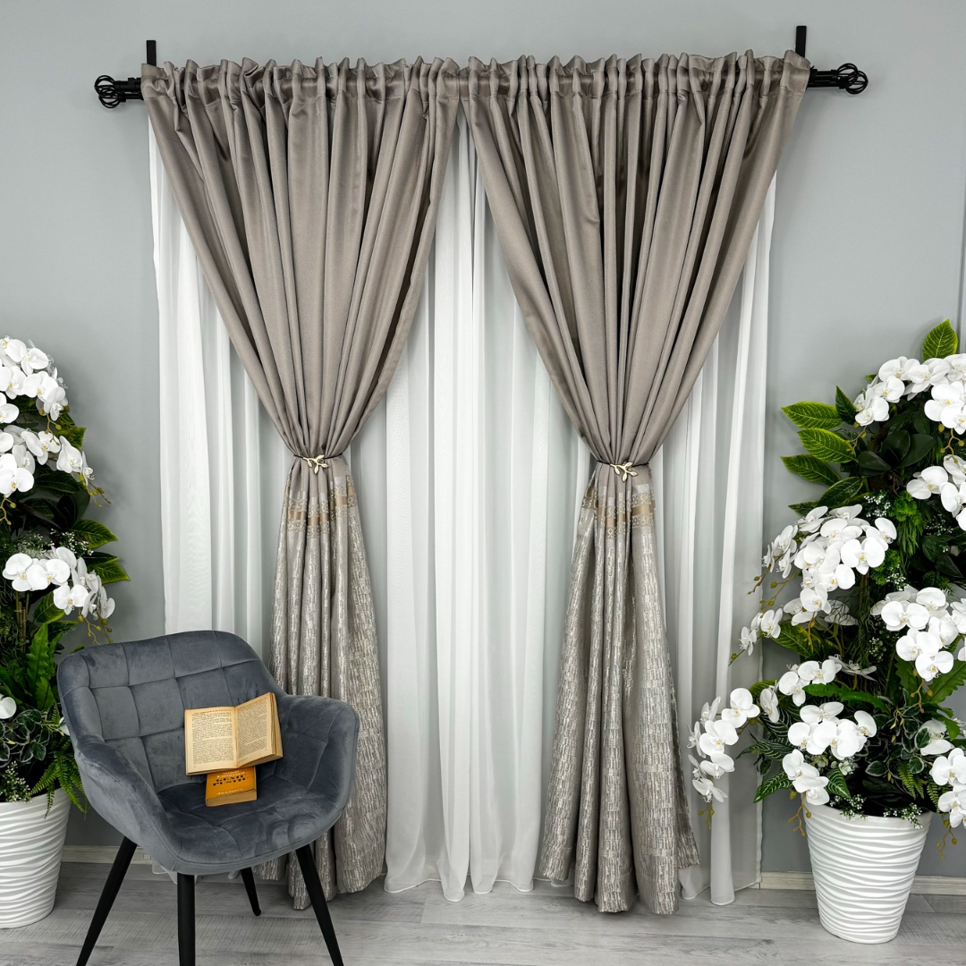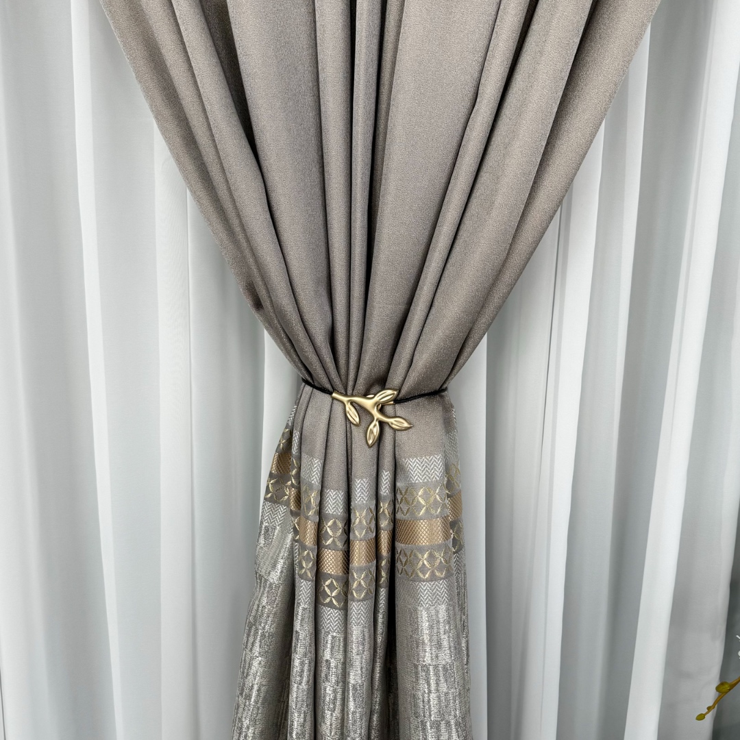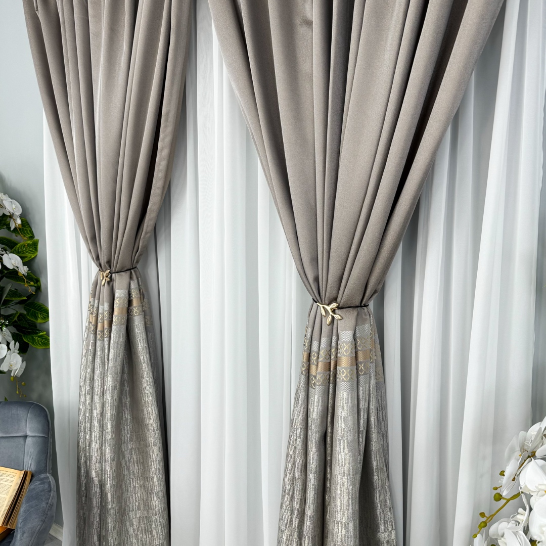 Setul de 2 bucati Draperie Simplicity tip panou Grej cu Gri reprezinta alegerea perfecta pentru a aduce eleganta si rafinament in orice incapere. Confecționate din material de inalta calitate, aceste draperii ofera o textura moale si bogata, aducand un sentiment de lux si sofisticare. Cu detaliile aurii metalizate, aceste draperii atrag atentia si confera un look opulent si glamour. Pot fi personalizate pe dimensiunile dorite de client si se pot intretine usor la 30°C. Transforma-ti spatiul intr-un sanctuar al elegantei cu acest set de draperii rafinate!