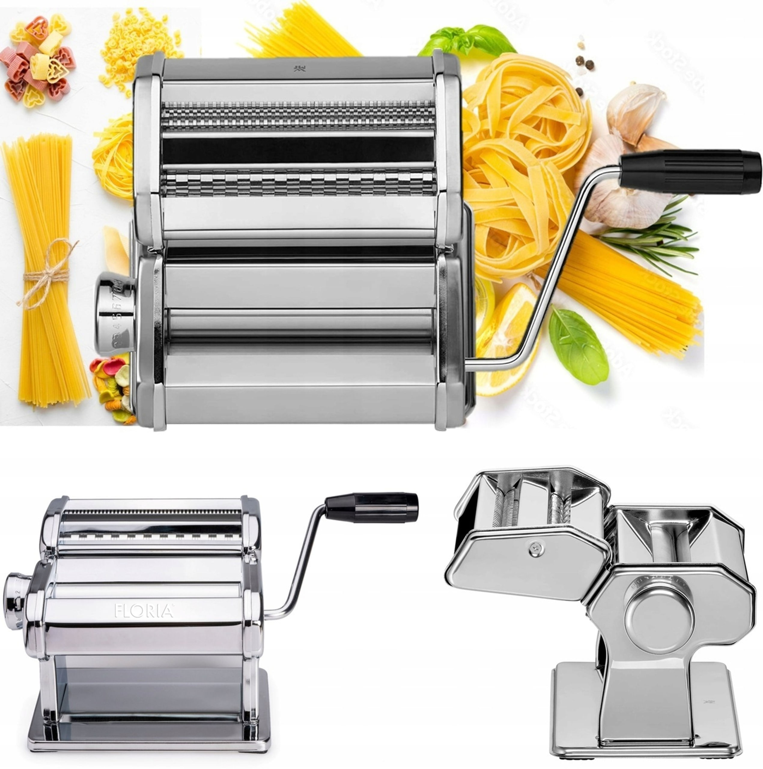 Daca v-ati saturat de pastele spaghetele si fideaua din comert si doriti o noua savoare si calitate atunci folositi aceasta masina manuala de facut paste chiar la dumneavoastra acasa Simplu eficient si sanatos aceasta masina de facut paste ofera cea mai inalta calitate data de producator Masina este usor de utilizat si de intretinut Masina de facut taitei vine insotita de manerul pentru rotire dar si de cel pentru fixarea aparatului de masa Masina de taitei Floria - poate intinde aluatul - 9 posibilitati de reglare a grosimii - poate taia taitei - latimea poate fi intre 2 6 5 mm CARACTERISTICI GENERALE Continut pachet 1 x Accesoriu fixare de masa CARACTERISTICI GENERALE Tip produs Masina de facut paste Tip Fix Material Inox Culoare Argintiu DIMENSIUNI Lungime 21 cm Latime 20 cm Latime maxima taiere 6 5 mm Greutate 3 Kg