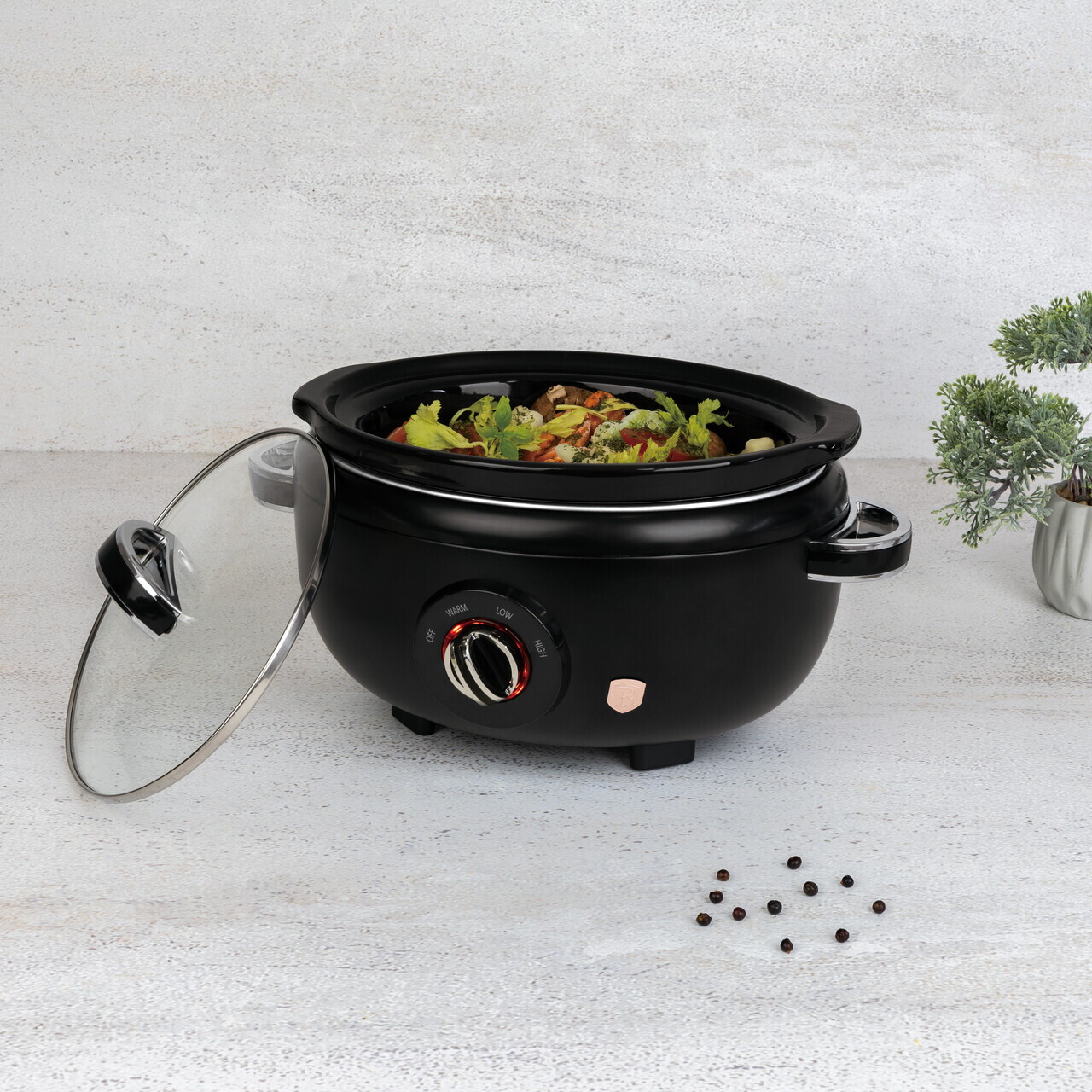 Functii de gatit la foc mare, la foc mic si mentinere la cald pentru gatit sau reincalzireCapac din sticla securizata pentru vizualizarea usoara a starii de gatireOala ceramica detasabilaUsor de curatatMaterial: ceramica, carcasa exterioara detasabila - carcasa din fierTensiune: 220-240V;Frecventa: 50/60 HzPutere: 200WCapacitate: 3.5 LCuloare: negru - auriu roz