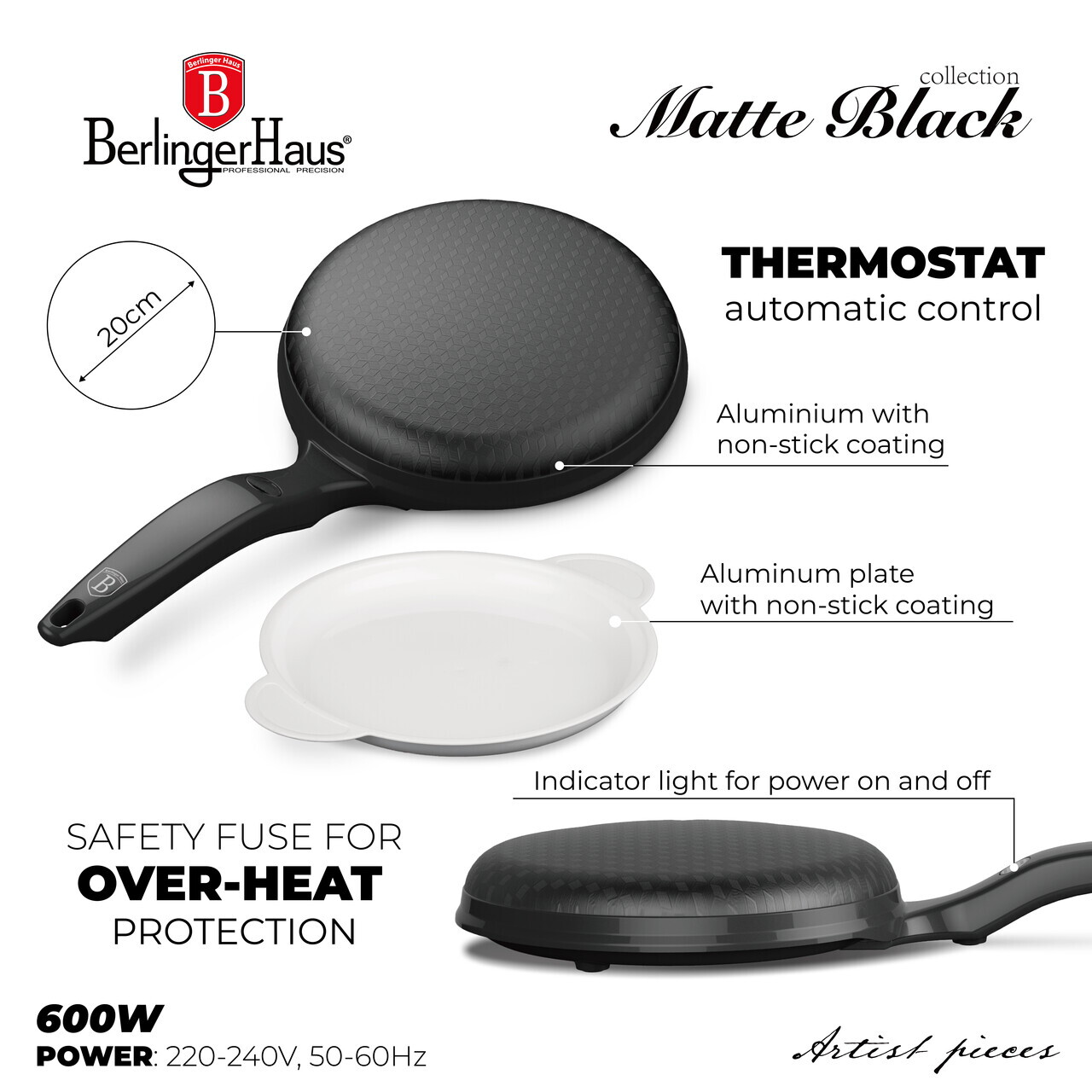 Aparat pentru prepararea clatitelor Berlinger Haus Matte Black 60W 20 cm aluminiu negru