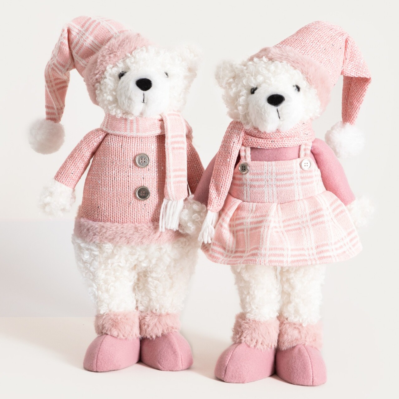 Decoratiune ursulet Pulise Homla 32x15x48 cm poliester/plastic roz/alb