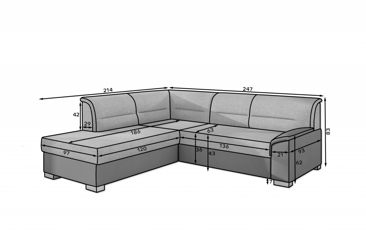 Colțarul extensibil Bergen pe stânga Monolith 84/Monolith 85 îmbină eleganța clasică cu funcționalitatea modernă. Cu dimensiunile de 247x214x83 cm, oferă un spațiu generos pentru relaxare și se transformă rapid într-un pat confortabil, având o suprafață de dormit de 195x135 cm, datorită mecanismului de tip delphin. Confortul este asigurat de șezutul din arcuri ondulate și spumă T30, ce garantează durabilitate și rezistență la uzură. Lada de depozitare integrată în ottoman este ideală pentru lenjerii. Bergen este perfect pentru cei care doresc un colțar practic și elegant, personalizabil în funcție de preferințe.