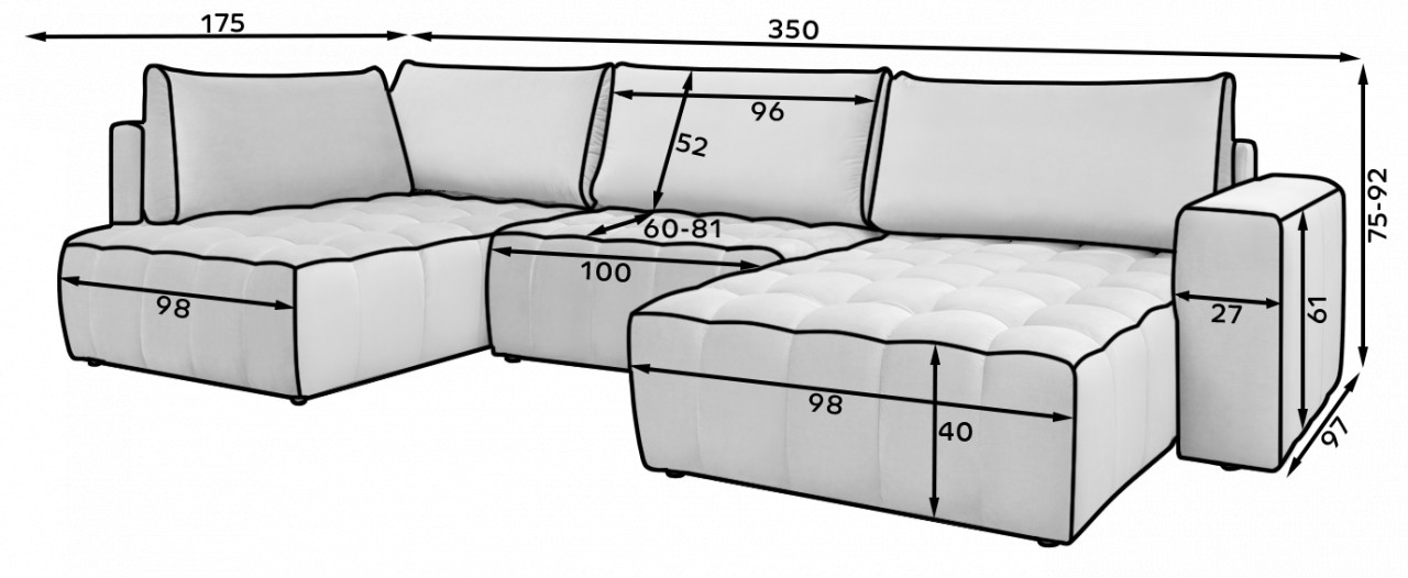 Colțarul extensibil Bonito pe dreapta Loco 33 îmbină eleganța cu confortul, având dimensiuni generoase de 350x175x92 cm, ideal pentru livinguri mari. Realizat dintr-o combinație de spumă T2540 și spumă HR de înaltă elasticitate, oferă un șezut confortabil și durabil. Include două șezlonguri și o funcție de dormit cu suprafața de 295x120 cm, extinderea fiind facilitată de mecanismul tip DL. Lada de depozitare integrată permite păstrarea pernelor și lenjeriilor, iar tapițeria, disponibilă într-o varietate de materiale, completează designul modern. Produsul este personalizabil și se livrează neasamblat, cu instrucțiuni incluse.