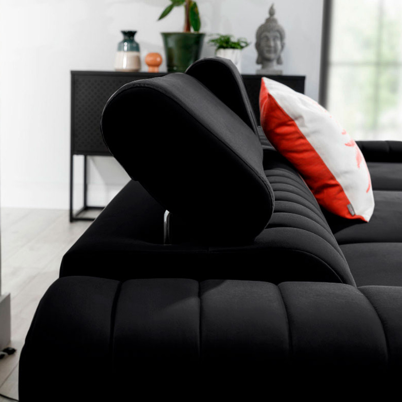 Colțarul extensibil Grayson pe dreapta Velvetmat 10 îmbină eleganța cu funcționalitatea, având dimensiuni de 278x205x92 cm, ideal pentru relaxare și odihnă. Șezutul din spumă T30 și HR asigură confort și rezistență, iar funcția de dormit oferă o suprafață generoasă de 125x216 cm, ușor de extins cu mecanismul tip „delfin”. Lada de depozitare integrată facilitează organizarea lenjeriei, iar tetierele reglabile și spătarul conturat contribuie la confortul utilizatorului. Grayson se remarcă prin detalii atent lucrate, fiind o alegere practică și elegantă pentru orice locuință.