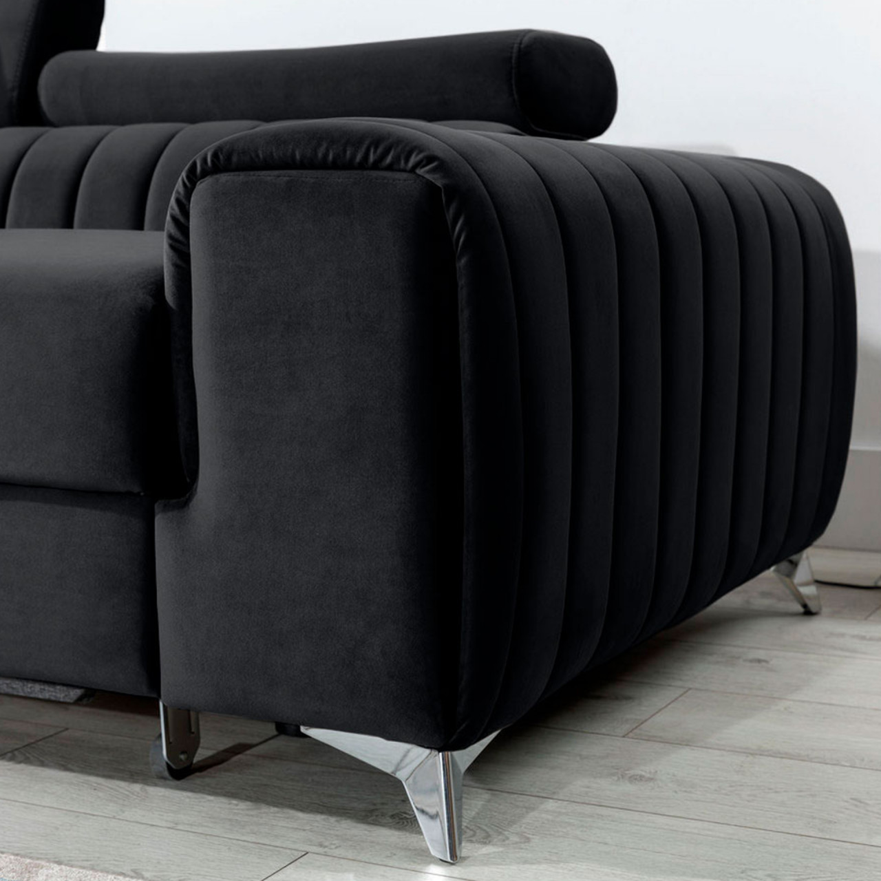 Colțarul extensibil Grayson pe stânga este soluția ideală pentru un living modern, combinând eleganța cu funcționalitatea. Având dimensiunile de 278x205x92 cm, acest colțar spațios dispune de un șezut confortabil realizat din spumă T30 și HR, ce asigură elasticitate și rezistență. Funcția de dormit se extinde ușor, oferind o suprafață generoasă de 125x216 cm, iar lada de depozitare integrată maximizează utilitatea. Tetierele reglabile și spătarul conturat completează designul, iar construcția solidă garantează confortul pe termen lung. Produsul este personalizabil, iar asamblarea se face ușor cu instrucțiunile incluse.