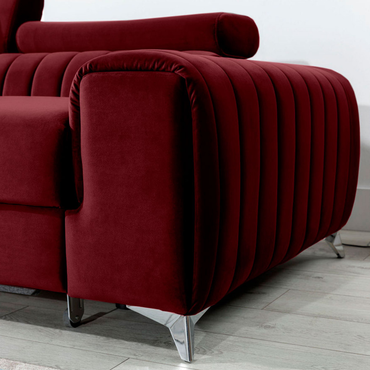 Colțarul extensibil Grayson pe stânga Loco 25 îmbină eleganța cu funcționalitatea, având dimensiunile de 278x205x92 cm. Designul său modern este accentuat de tetiere reglabile și un spătar conturat, oferind un confort sporit. Șezutul, realizat din spumă T30 și HR, asigură elasticitate și rezistență, iar funcția de dormit, cu o suprafață generoasă de 125x216 cm, se extinde ușor prin mecanismul tip „delfin”. Lada de depozitare integrată contribuie la organizarea eficientă a lenjeriei. Produsul este personalizabil, iar montajul este simplu, cu instrucțiuni incluse.