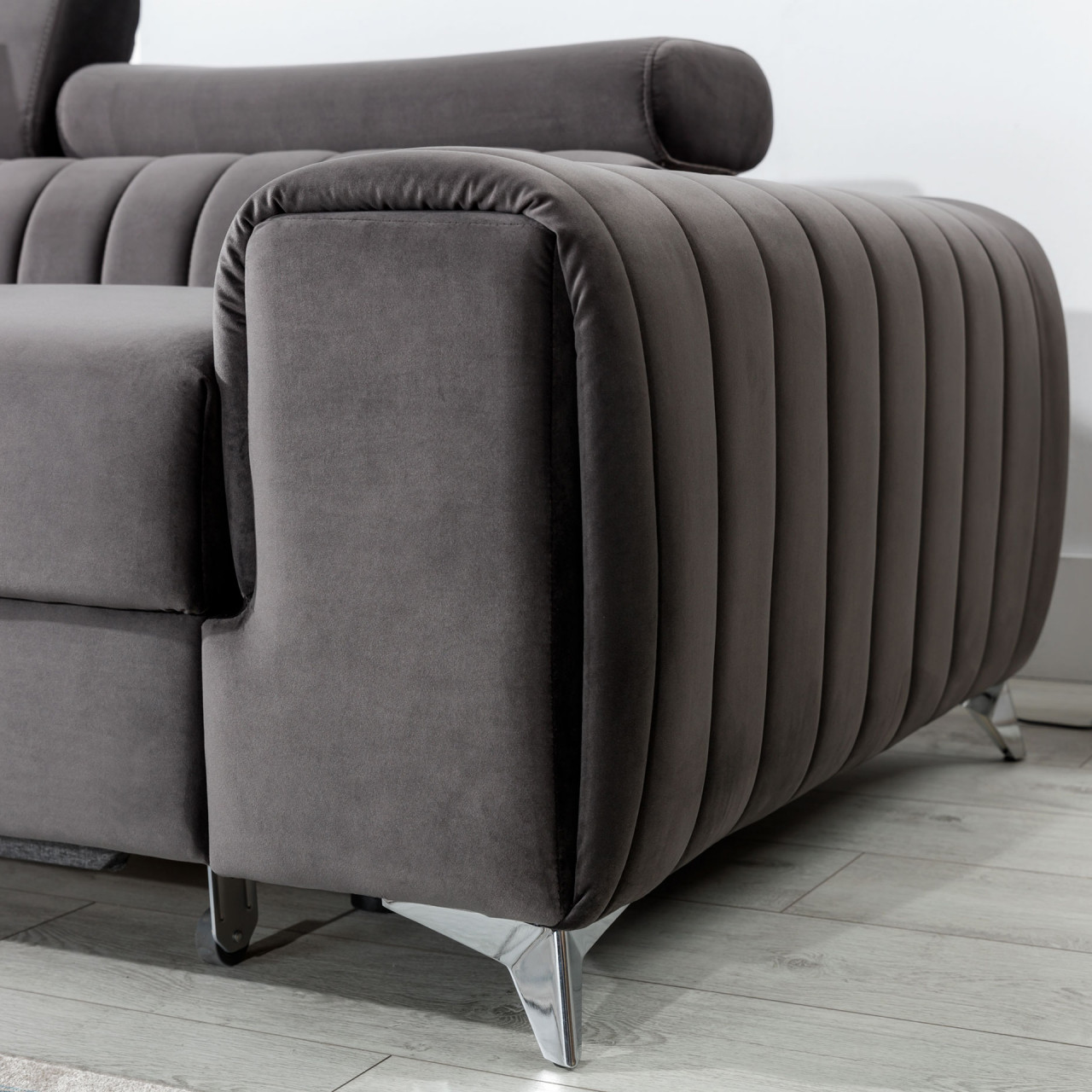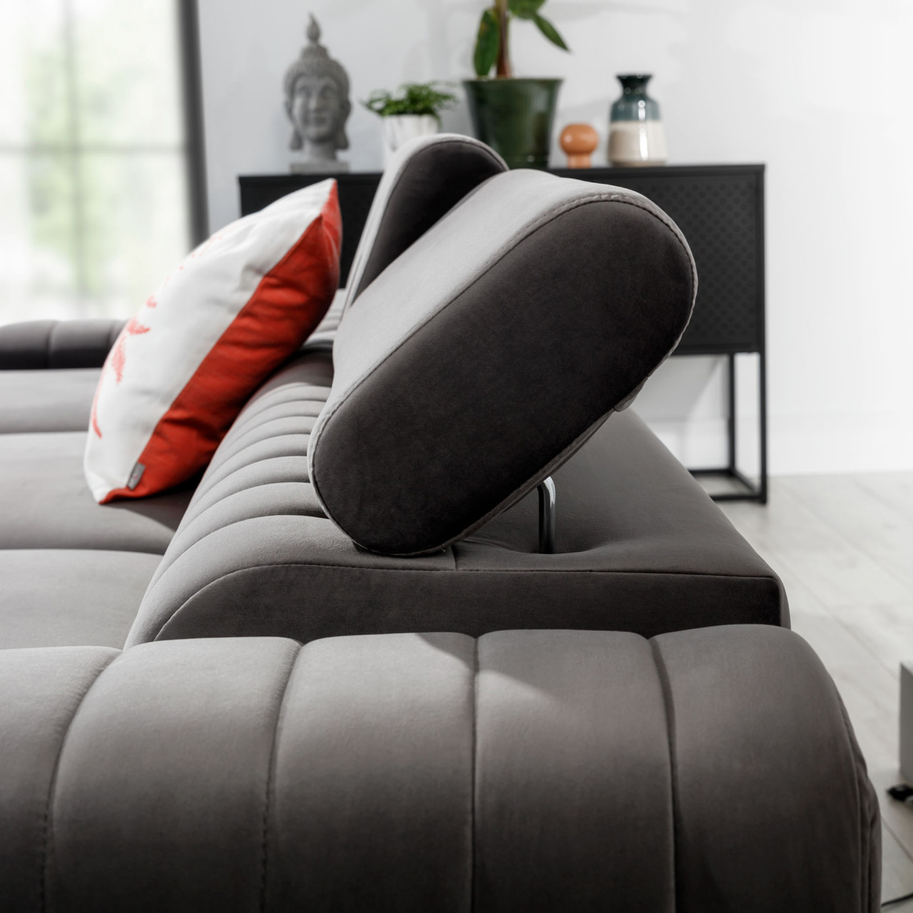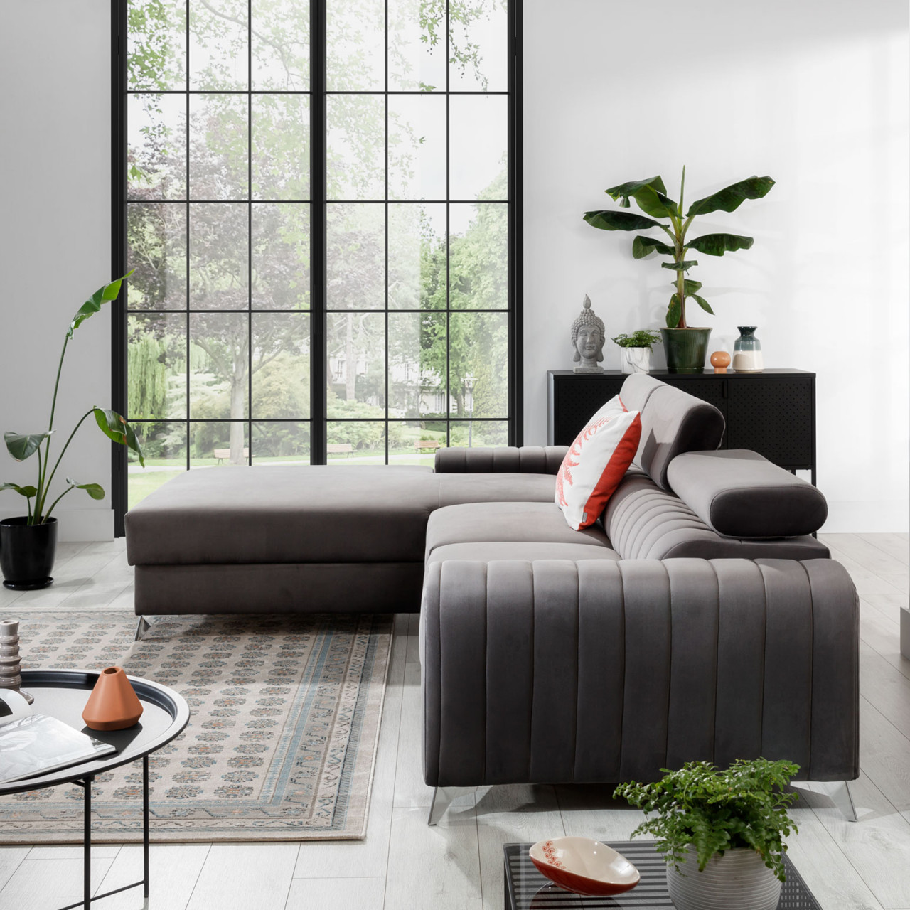 Colțarul extensibil Grayson pe stânga Loco 4 aduce o notă de eleganță și funcționalitate în orice living. Cu dimensiuni de 278x205x92 cm, oferă un spațiu generos pentru relaxare și odihnă. Șezutul din spumă T30 și HR asigură confort și rezistență în timp, iar funcția de dormit, cu o suprafață de 125x216 cm, se extinde ușor datorită mecanismului tip „delfin”. Lada de depozitare integrată facilitează organizarea lenjeriei, iar tetierele reglabile și spătarul conturat sporesc confortul. Designul modern, cu detalii atent lucrate, face din Grayson o alegere ideală pentru orice locuință.