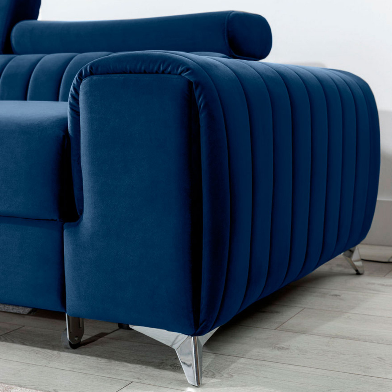 Colțarul extensibil Grayson pe stânga, tapitat cu Velvetmat 40, este o piesă de mobilier spațioasă și elegantă, ideală pentru orice living. Cu dimensiuni de 278x205x92 cm, oferă confort și relaxare, având un șezut realizat din spumă T30 și HR, ce asigură durabilitate. Funcția de dormit, cu o suprafață de 125x216 cm, se extinde ușor prin mecanismul tip „delfin”. Lada de depozitare integrată este perfectă pentru organizarea lenjeriei, iar tetierele reglabile și designul modern completează experiența de confort. Produsul este personalizabil în culoare și material, fiind livrat neasamblat, cu instrucțiuni incluse.