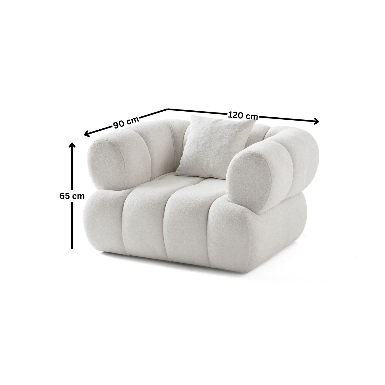FotoliuTesatura: Poliester (Boucle Texture)Picioare din plasticEasy-CleanPortable Back Cushion32 DNS SpongeInaltime sezut: 20 cmPerna inclusa.Latime: 120 cm Inaltime: 65 cm Adancime: 90 cmArmest Height: 65 cmInaltimea piciorului: 1,5 cmGreutate maxima suportata: 90 kg