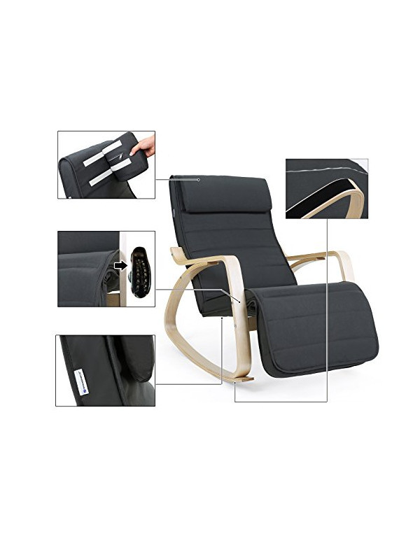 Descoperiți confortul și stilul cu fotoliul balansoar Songmics Gri LYY10G. Fabricat din lemn de calitate superioară și burete moale, acest fotoliu oferă o experiență plăcută de relaxare. Dimensiunile sale de 67 x 115 x 91 cm îl fac potrivit pentru orice spațiu, iar adâncimea de 48 cm și lățimea de 55 cm a scaunului asigură confort optim. Cu o capacitate de suport de până la 150 kg, este ideal pentru momentele de relaxare. Pachetul include fotoliul și instrucțiuni ușor de urmat în mai multe limbi. Alegeți Songmics pentru un plus de eleganță și confort în căminul dumneavoastră!