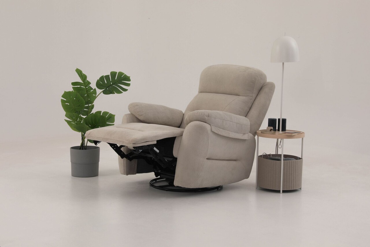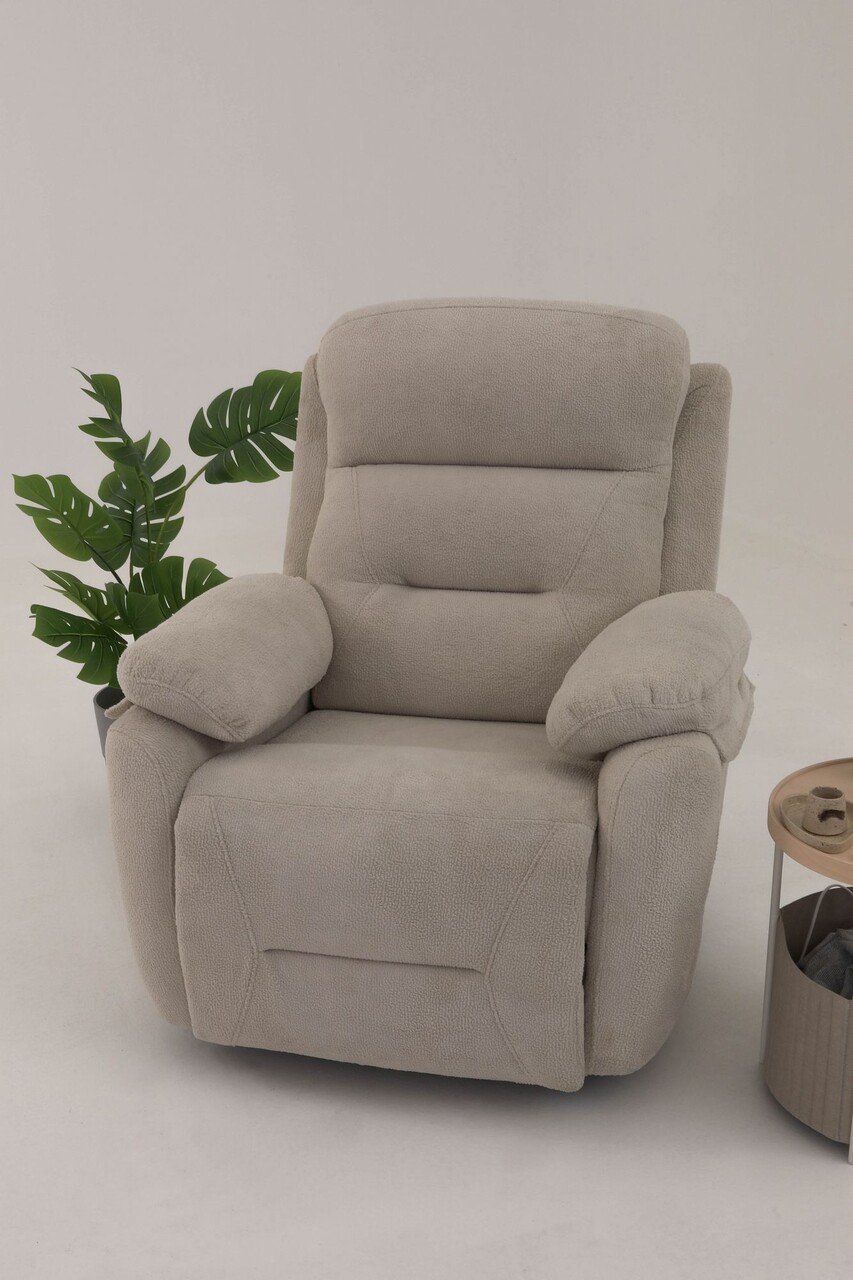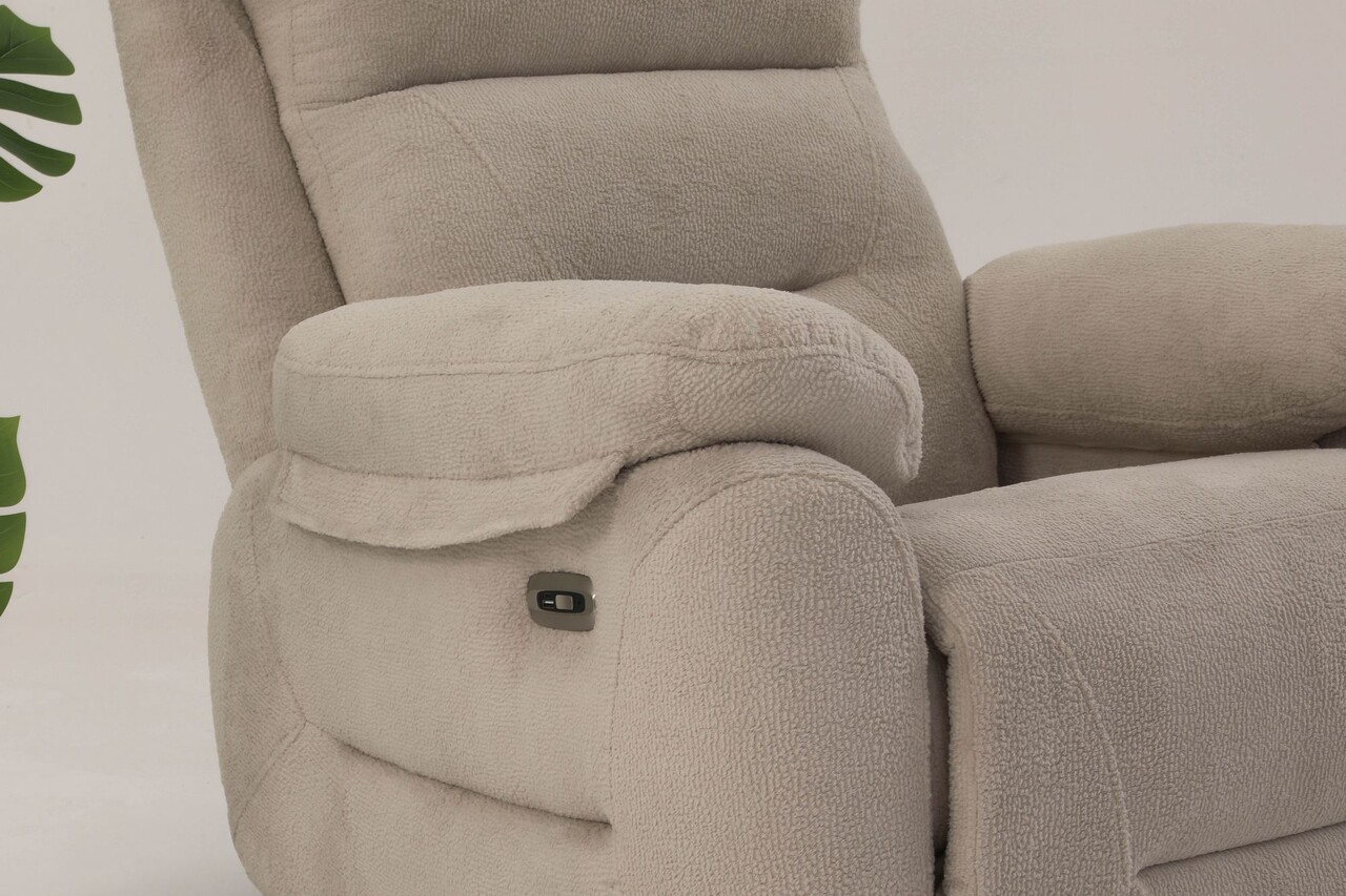 Fotoliu cu reclinerTesatura: Poliester (Angel Texture)Picioare din metalEasy-Clean32 DNS SpongeInaltime sezut: 15 cmLatime: 90 cm Inaltime: 105 cm Adancime: 75 cmInaltime cotiera: 60 cmInaltimea piciorului: 1 cmElectric ReclinerGreutate maxima suportata: 90 kg