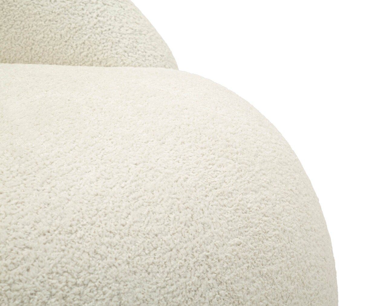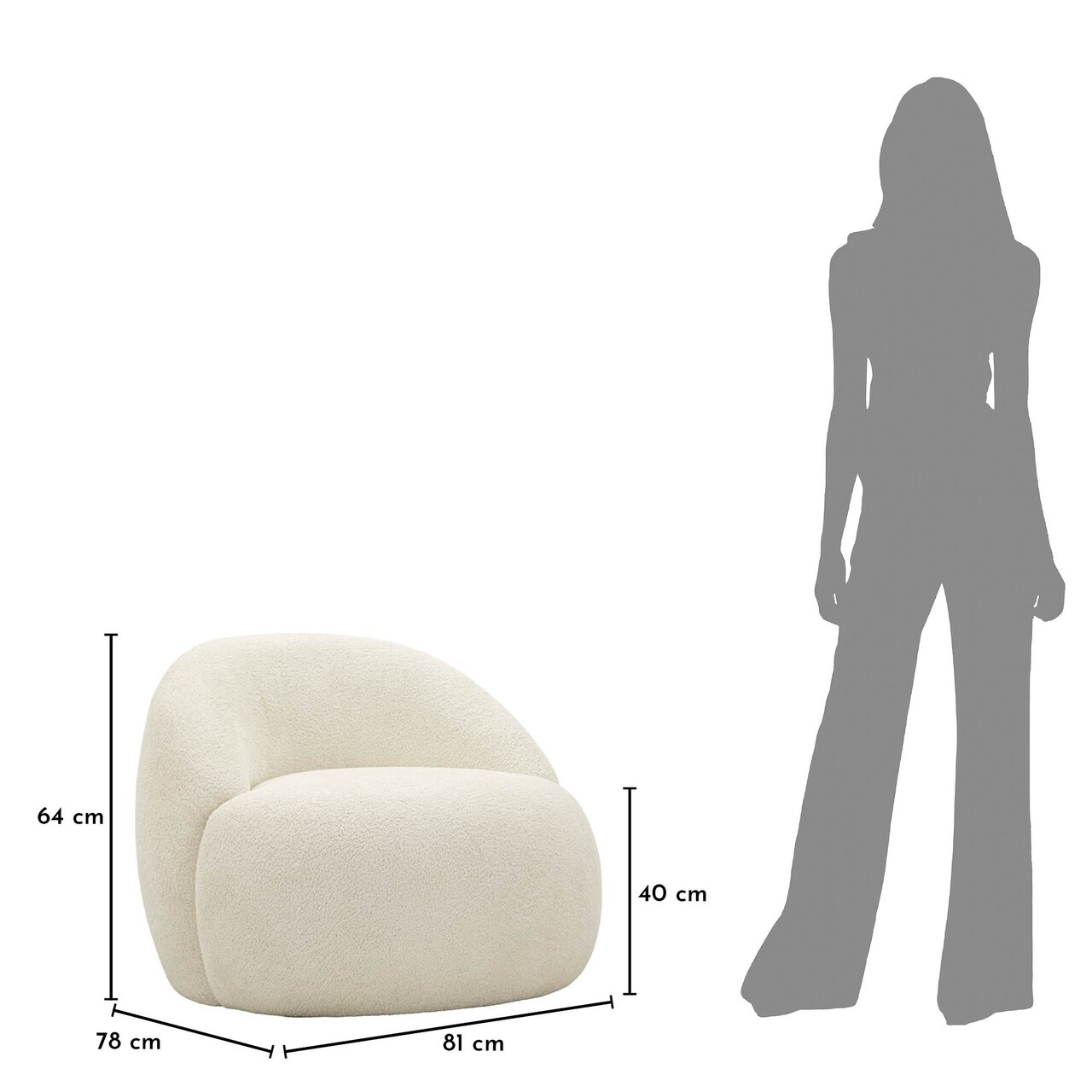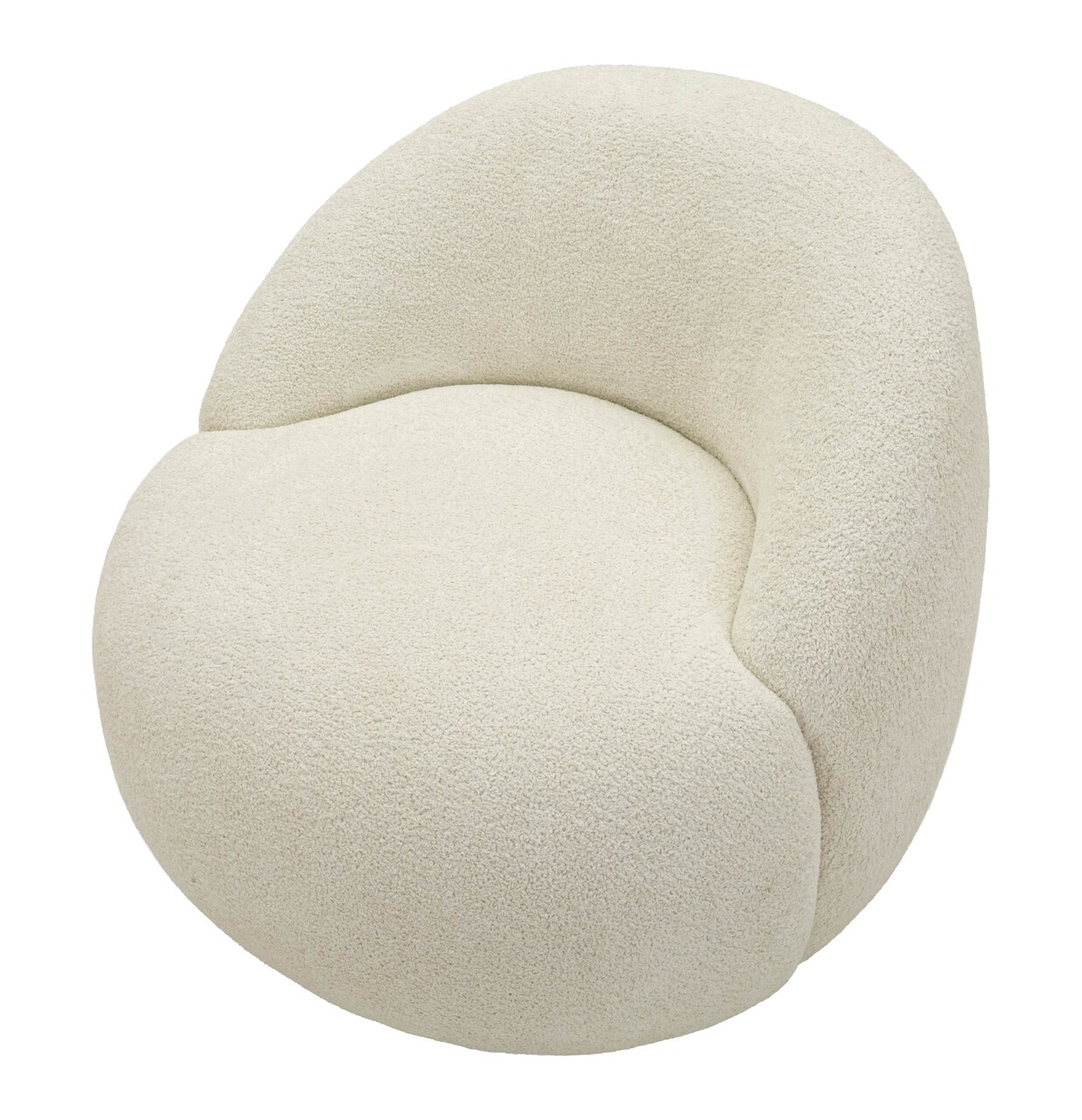 Forme rotunjite, tesatura boucle si moliciune invaluitoare. Fotoliul Ginevra este o invitatie la relaxare, un element de design ce imbina estetica scandinava cu confortul absolut.Inaltime sezut: 40 cm