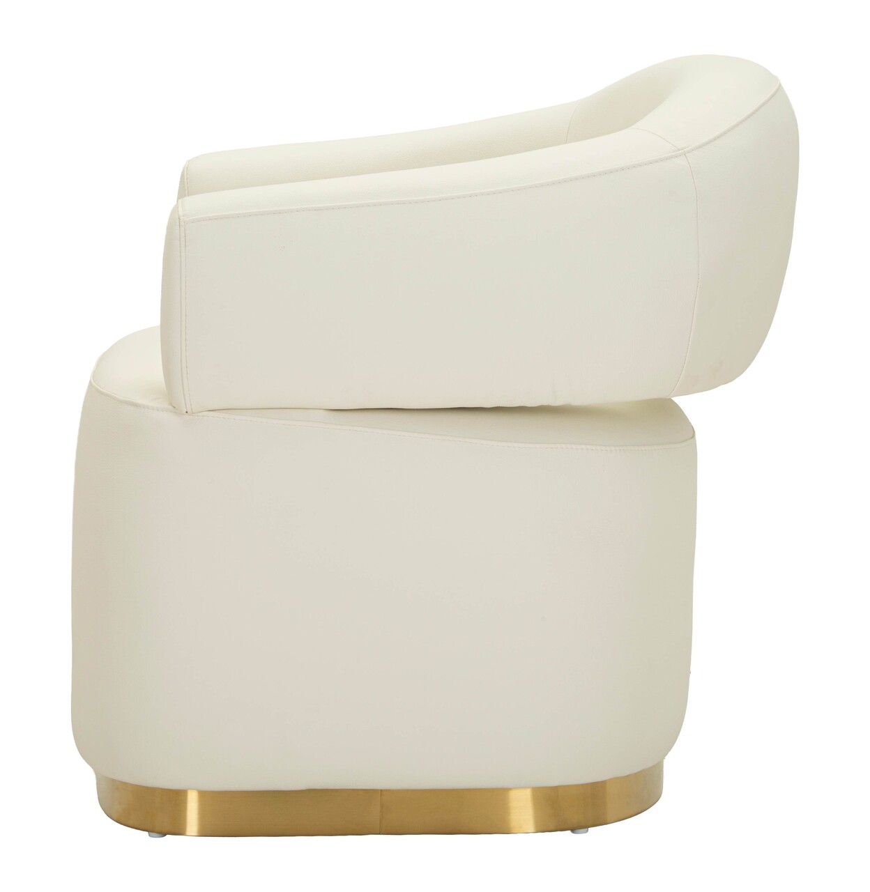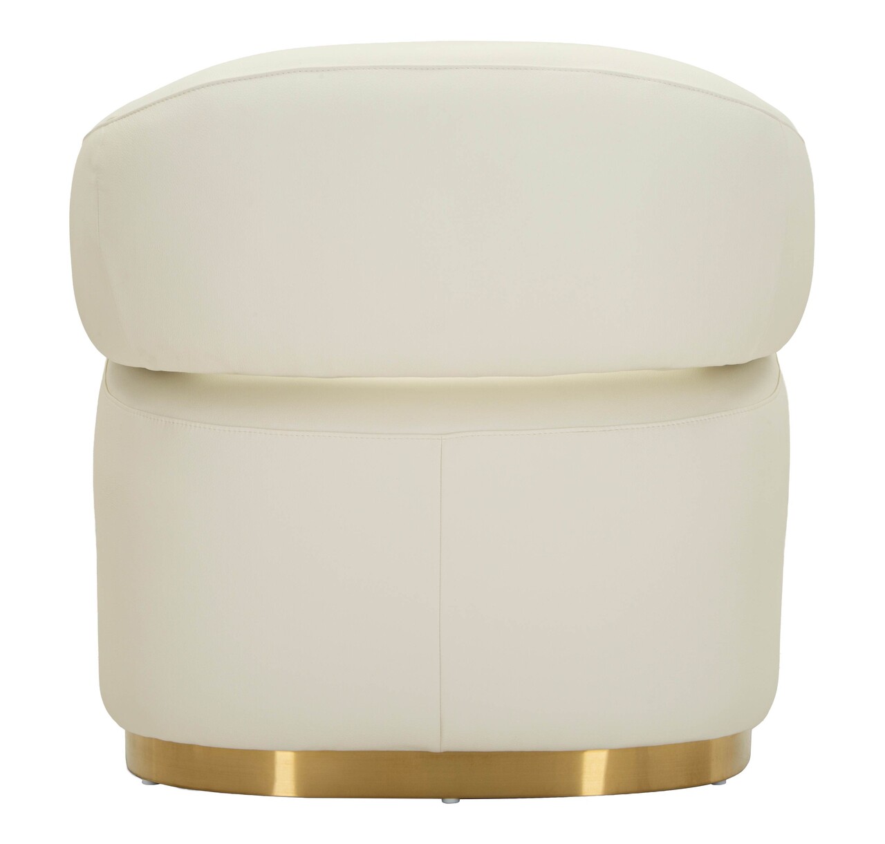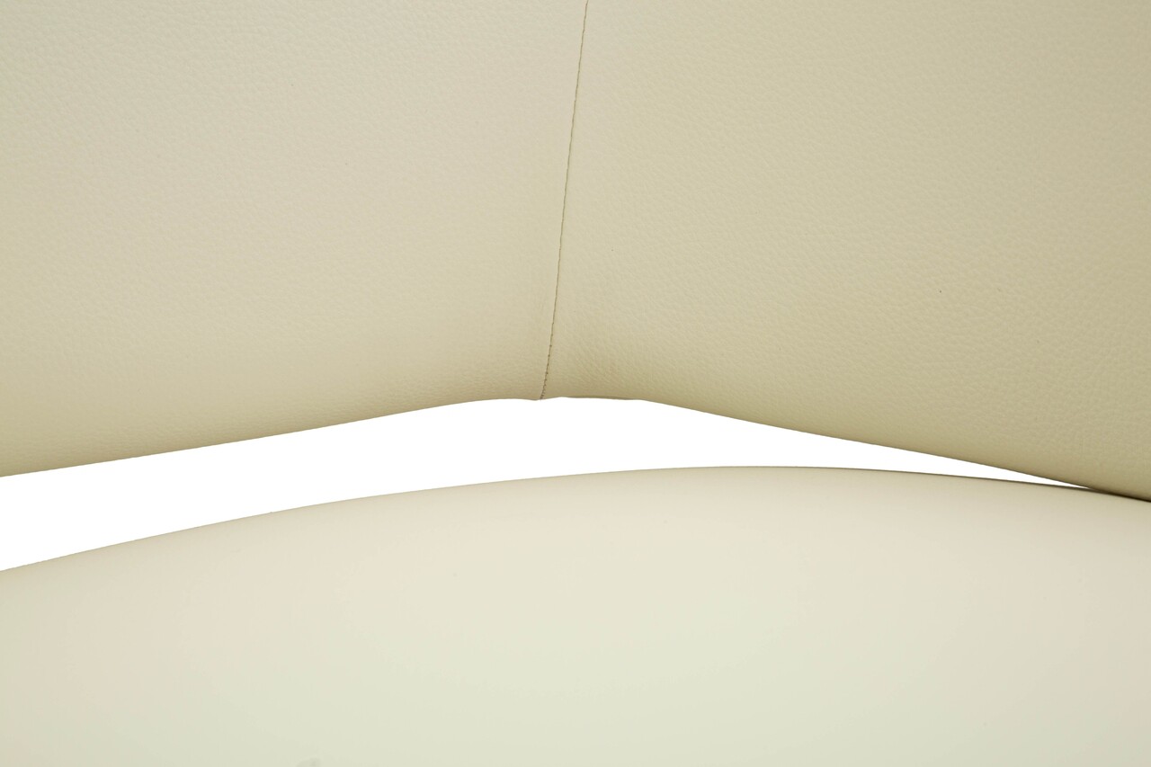 O evolutie eleganta a colectiei Minsk. Baza aurie si silueta curbata ofera un aer luxos si modern, perfect pentru spatii rafinate.Compozitie material: lemn de pin, MDF, burete, piele ecologica din poliuretan, metal.Inaltime sezut: 46 cm.