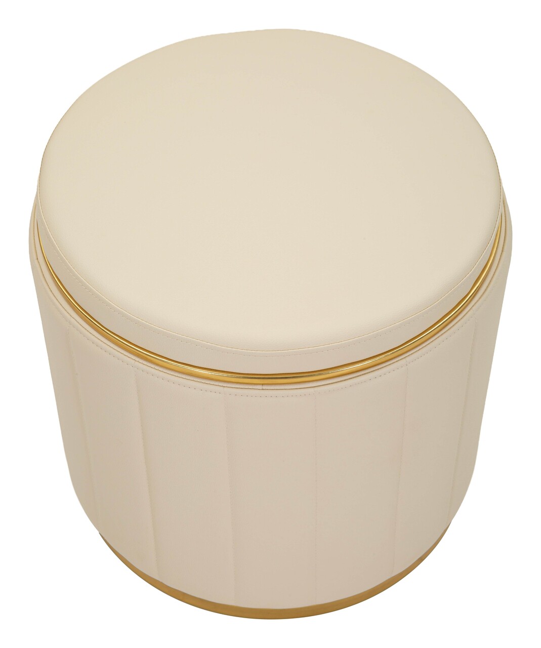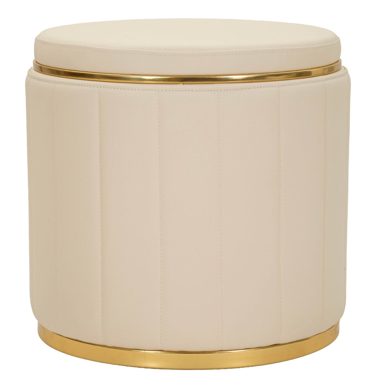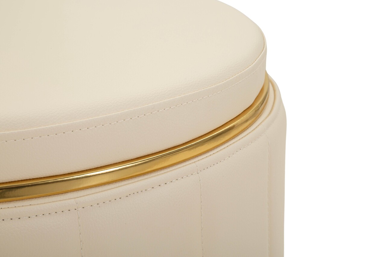 Taburet cu spatiu de depozitare Mauro Ferretti London 46.5x44 cm lemn de pin/piele ecologica crem/auriu