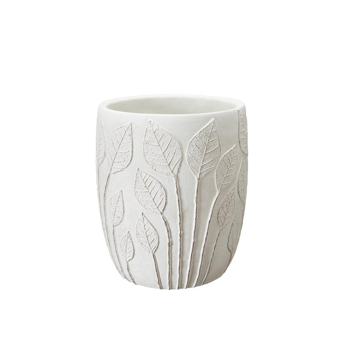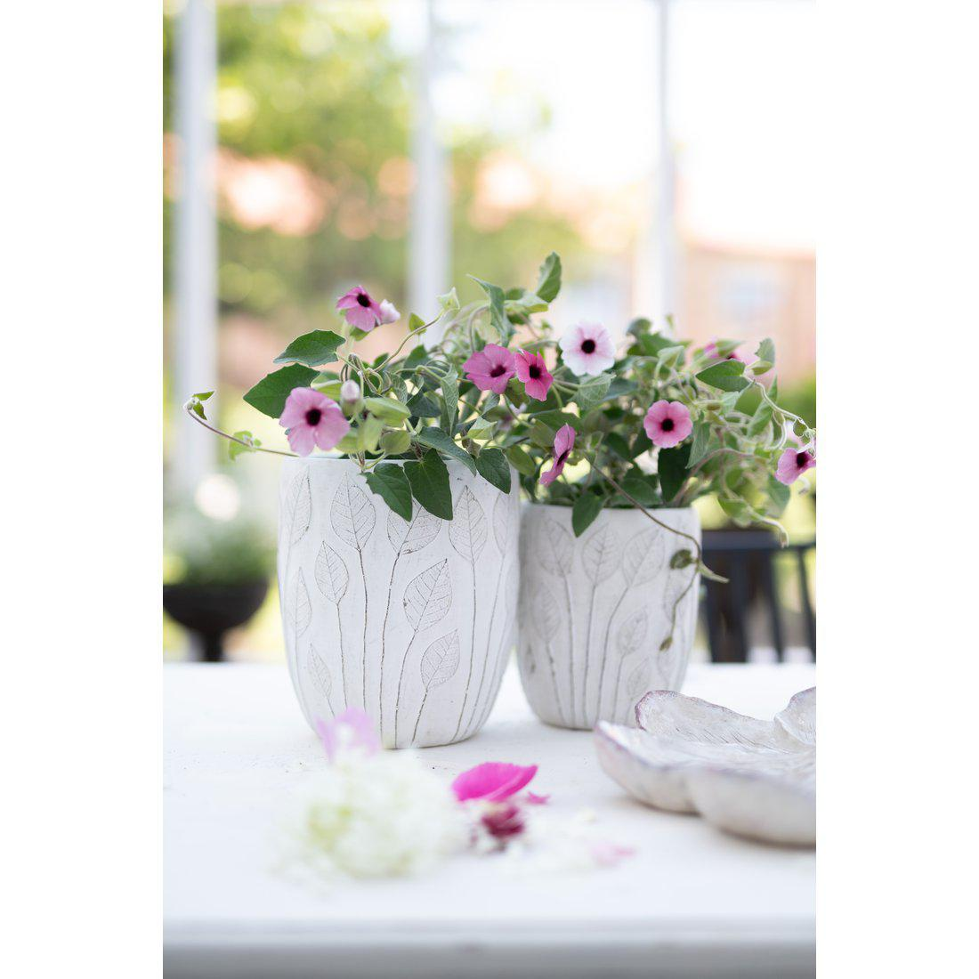 Îmbogățiți-vă spațiul cu setul de 2 ghivece albe cu model de frunze FELICE, perfecte pentru a adăuga un strop de natură în orice încăpere. Fabricate din beton de înaltă calitate, aceste ghivece au un design elegant, cu o nuanță albă pătată ce le conferă un aspect rafinat. Ghivețelul de dimensiune S măsoară 14 x 17 cm, iar cel de dimensiune M are 18 x 18 cm, având un diametru de 12 cm, respectiv 15 cm. Aceste ghivece sunt ideale pentru a găzdui flori sau plante decorative, aducând un aer fresh și modern în locuința dumneavoastră.