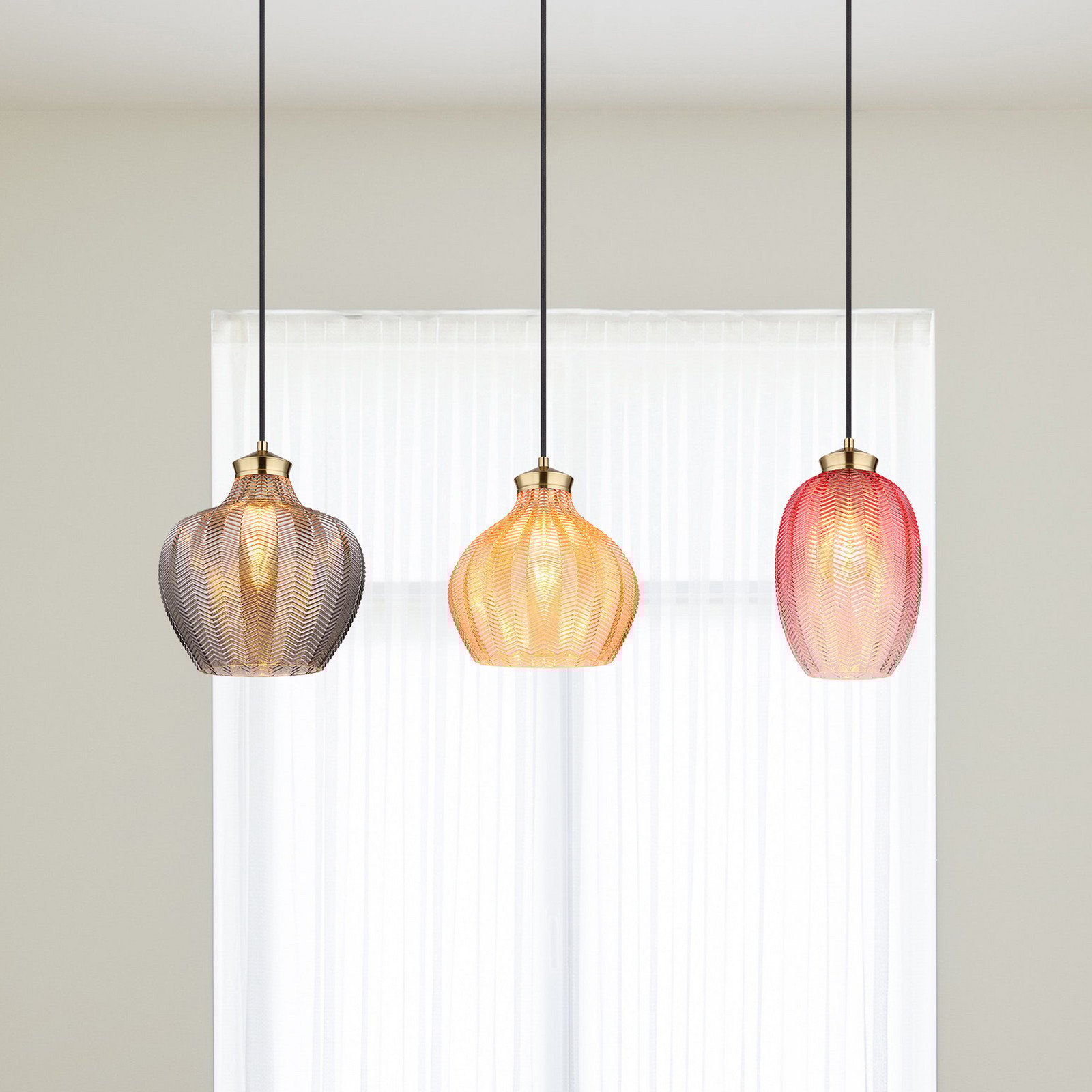 Globo Lampă suspendată Jessica lungime 90 cm colorată 3 becuri sticlă - Camera de zi / sufragerie - culoarea chihlimbarului culoarea fumului roșu auriu mat