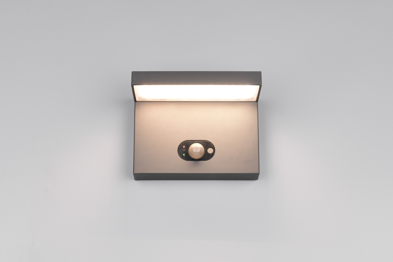 Aplica de perete pentru exterior Blyde TRIO 18x13 cm 5W 1x SMD LED din aluminiu antracit combină un design modern cu funcționalitate ridicată. Echipată cu senzor de mișcare și senzor de crepuscul, lumina se activează automat la detectarea mișcării. Poate fi utilizată fie cu energie solară, fie cu tensiune de rețea, funcționând hibrid pentru a încărca bateria. La amurg, oferă o iluminare blândă de 10%, iar la detectarea mișcării, intensitatea crește la 100%. Cu un grad de protecție IP65, este rezistentă la apă și praf, iar tehnologia LED asigură o durată lungă de viață și eficiență energetică.