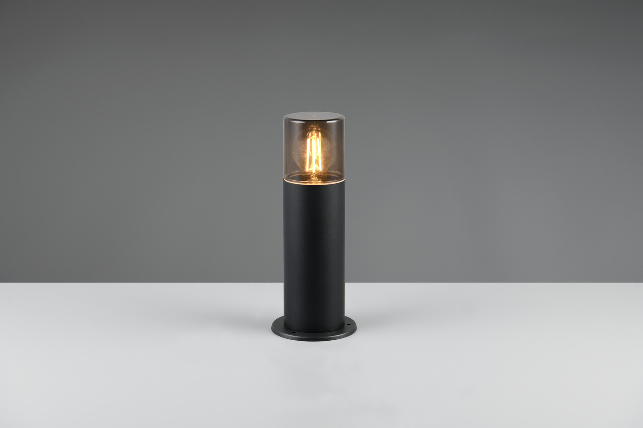 Lampadarul de exterior Hoosic TRIO combină funcționalitatea cu un design modern, având un corp din aluminiu turnat sub presiune, rezistent la intemperii. Cu un grad de protecție IP44, acesta oferă o iluminare uniformă și eficientă, ideală pentru intrările în case și scări. Finisajul negru mat, împreună cu detalii din plastic de culoarea fumului, se integrează armonios în diverse decoruri. Recomandat cu un bec LED, lampadarul asigură o iluminare de calitate, durabilitate și o generare redusă de căldură, fiind alegerea perfectă pentru o gamă variată de aplicații.