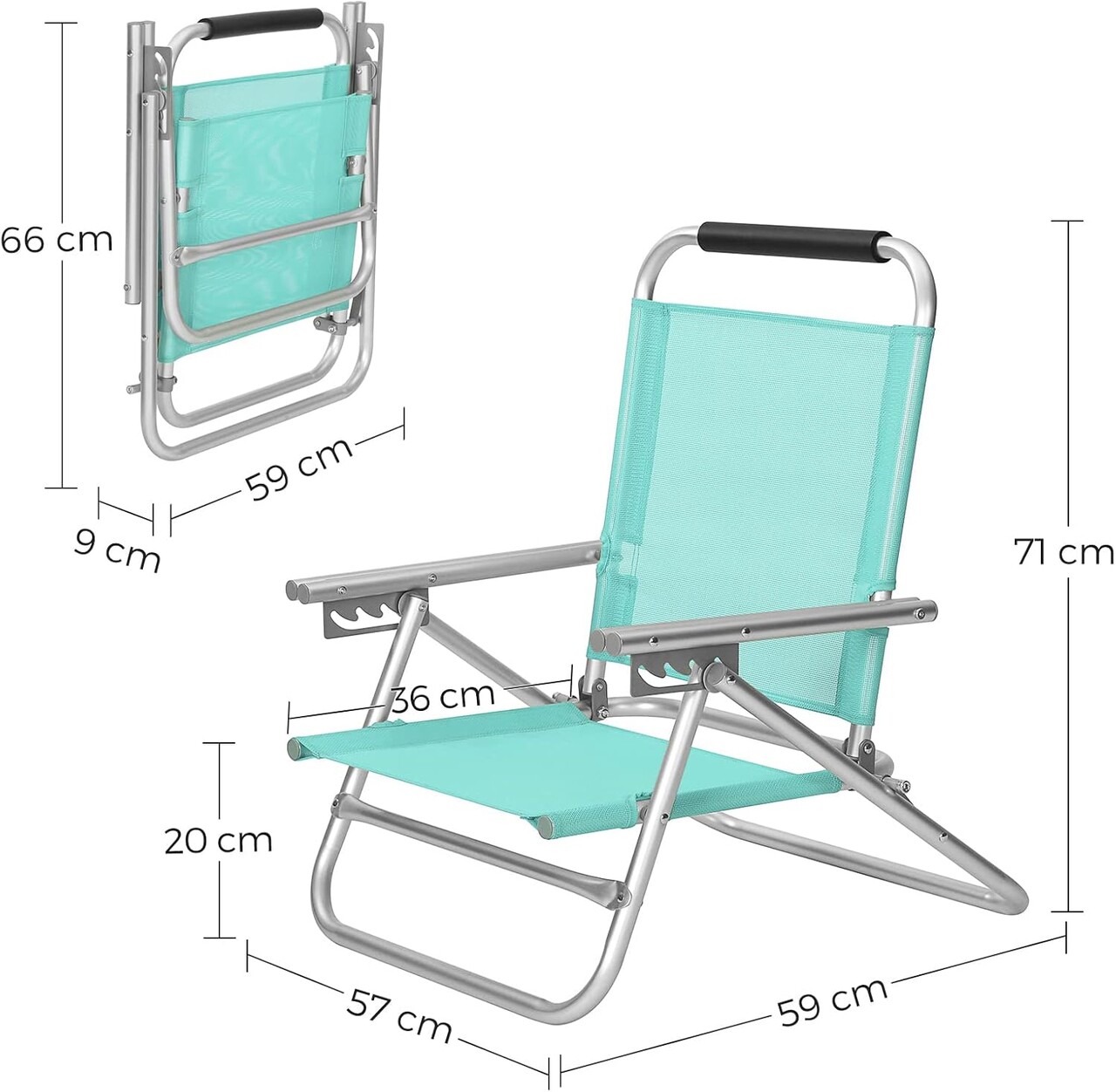 Set 2 scaune de plaja Songmics pliabile reglabile in 4 pozitii max 150 kg 59x57x71 cm aluminiu verde