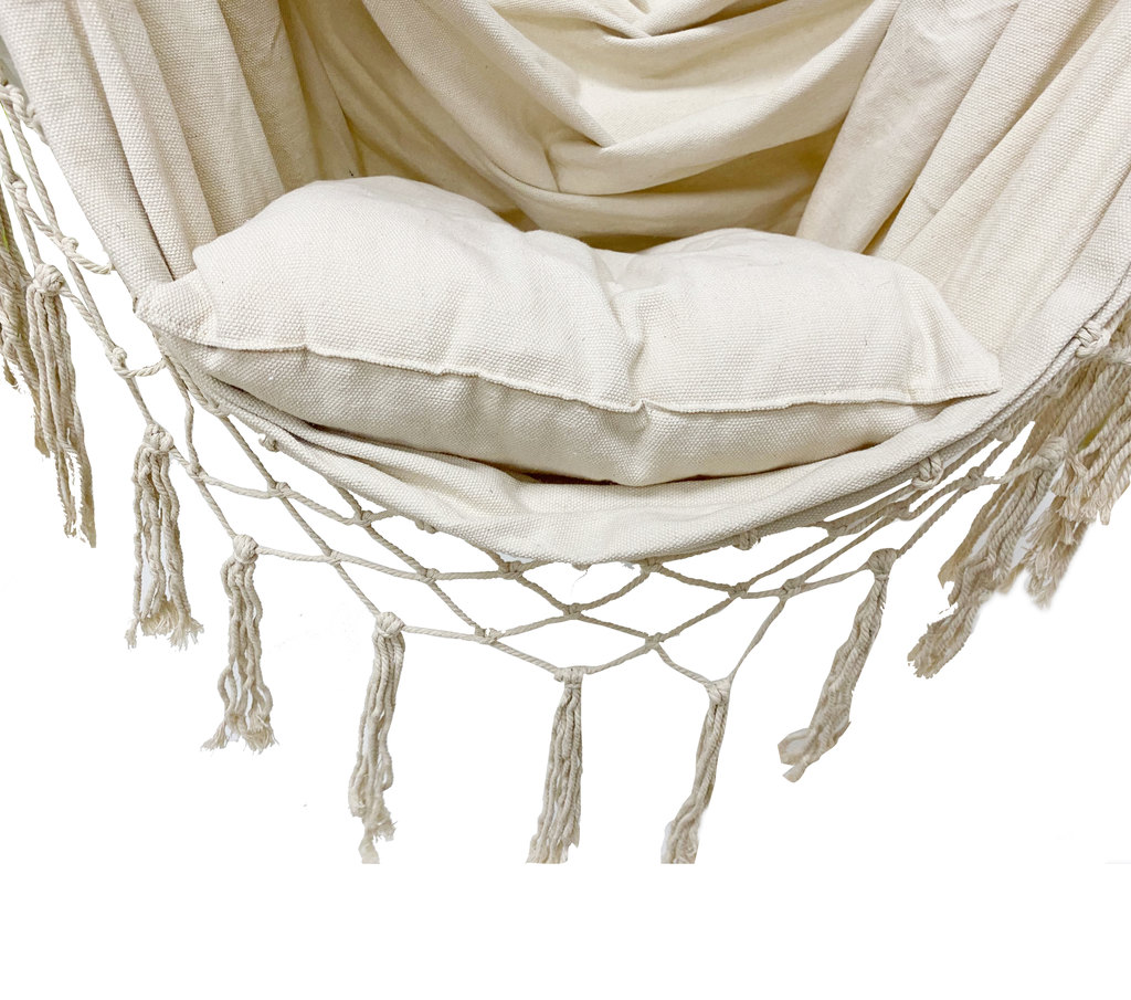 Experimentați confortul suprem cu balansoarul suspendat Bej BRASILIA. Realizat dintr-un amestec de 70% bumbac și 30% poliester, acest balansoar oferă o senzație plăcută la atingere și o durabilitate excelentă. Structura din lemn masiv asigură stabilitate, în timp ce dimensiunile generoase de 110 cm lățime și 130 cm înălțime îl fac perfect pentru relaxare. Cu o capacitate de susținere de 120 kg, este ideal pentru momentele de răsfăț în aer liber sau în confortul căminului dumneavoastră. Adăugați un strop de eleganță și confort în orice spațiu!