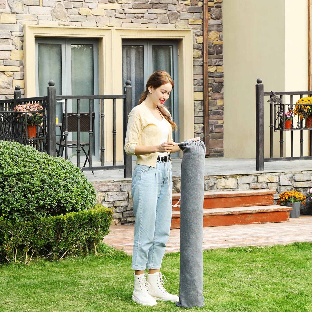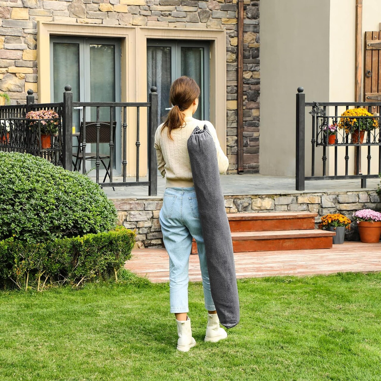 Un weekend perfect: Care este planul tau pentru weekend? Ce zici de o iesire in parc cu acest hamac? Intinde-te confortabil, tine gustarile si telefonul in buzunarul atasat si sprijina-ti capul pe cele 2 perne incluse - asa incepe un weekend reusit.Imparte bucuria: Cu o latime de 150 cm, hamacul este perfect pentru a te bucura de momente placute alaturi de persoana iubita sau de copil. Materialul din bumbac si poliester este respirabil si confortabil, oferind relaxare maxima.Siguranta pe primul loc: Materialul de 380 g/m² si nodurile rezistente asigura o capacitate de incarcare de pana la 300 kg. Te poti relaxa fara griji, acest hamac iti ofera sustinere sigura.Ia-l cu tine oriunde: In gradina, in parc sau la camping - geanta de transport inclusa iti permite sa iei hamacul oriunde. Bucura-te de soare si de momente de relaxare in aer liber.Ce primesti: un hamac dublu cu 2 bare din lemn, 2 perne si un design elegant care creeaza o atmosfera de vacanta.Specificatii:Culoare: griMaterial: material TC 380 g/m² (70% bumbac, 30% poliester), lemn masivDimensiune hamac: 210 x 150 cmLungime totala: 300 cmDimensiune perna: 70 x 40 cmDimensiune bara lemn: 120 x 3.2 x 2.2 cmCapacitate maxima de incarcare: 300 kgContinutul pachetului:1 x hamac2 x perne1 x geanta de transport