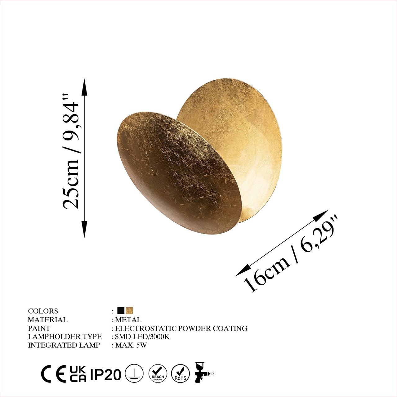 Aplica de pereteBaza metalicaLatime: 25 cmInaltime: 25 cmAdancime: 16 cmDiametrul abajurului: 25 cmInaltimea abajurului: 2 cmDiametru baza: 10 cmInaltime baza: 2 cmIP20Tip suport de lampă: Led SMDTip soclu: LED 5W 3000K