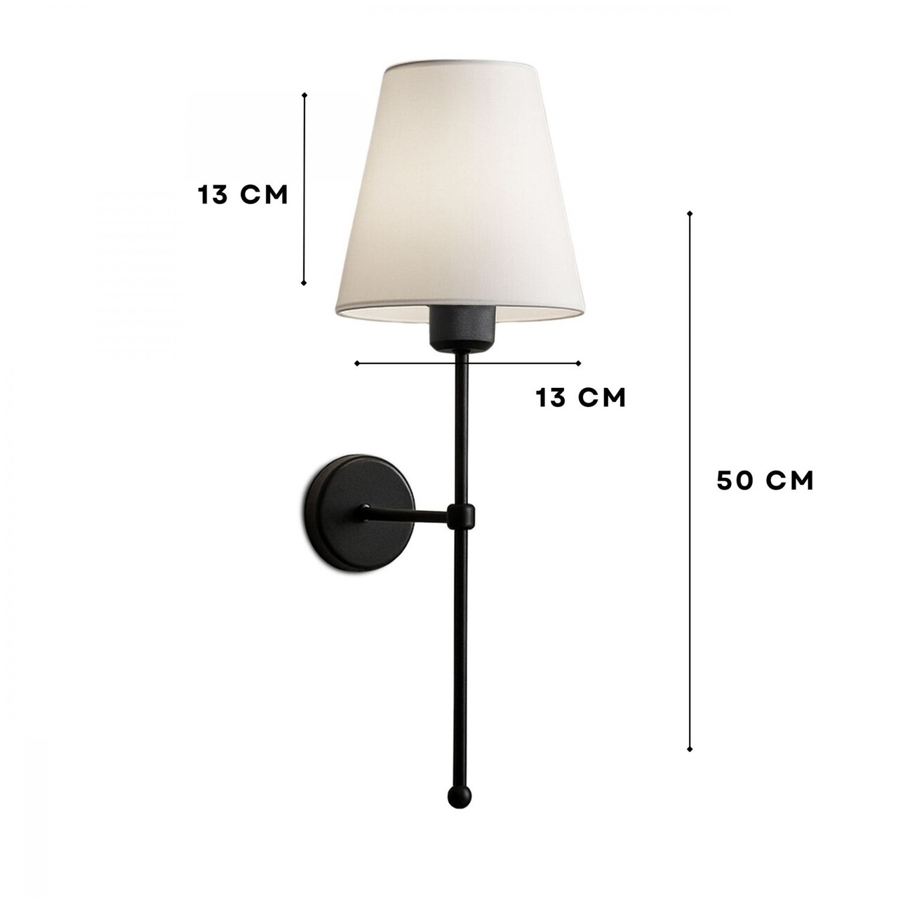 Aplica de pereteCapac PVCDimensiunea capacului: Ø13 h:13 cmInaltime totala: 50 cmTip soclu: 1 x E 27 Max 40 WBecul nu este inclus220 - 240 VGrad de protectie: IP20