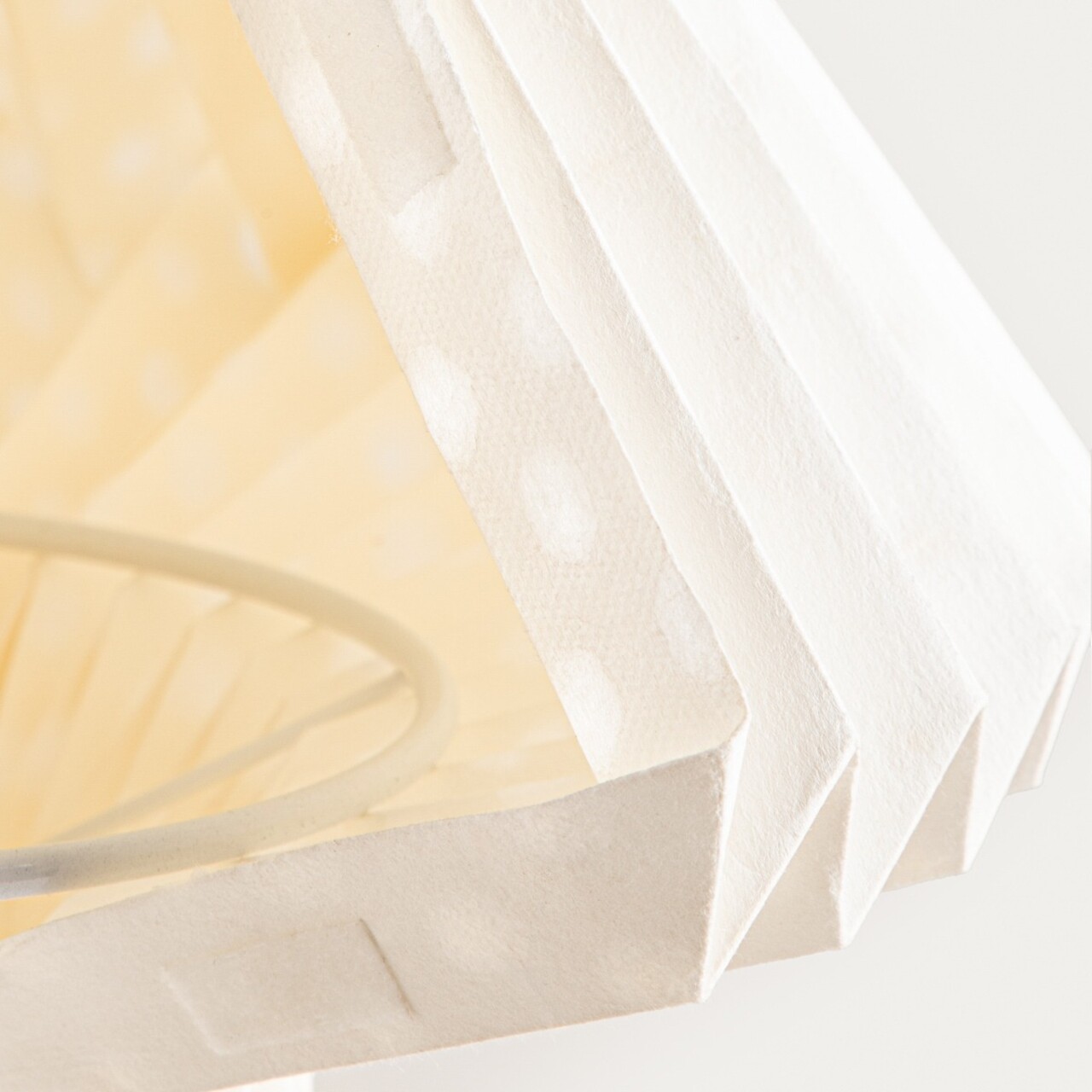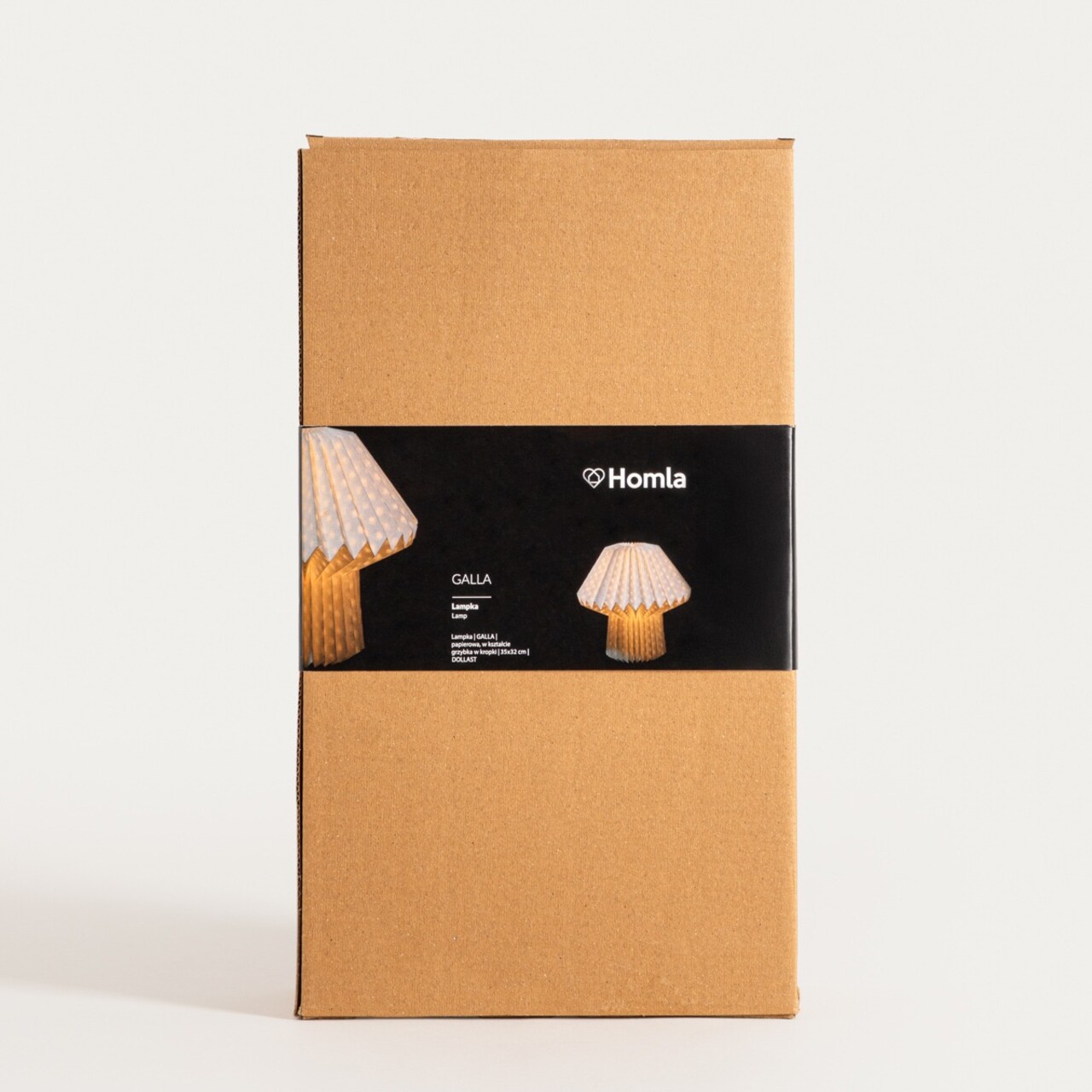 Brandul HOMLA vine in ajutorul dumneavoastra cu multitudinea de produse variate datorita carora veti amenaja fiecare colt al locuintei dumneavoastra asa cum va doriti. Indiferent de produsul pe care il veti alege HOMLA va va ofera stil, durabilitate, functionalitate, manopera estetica si design unic. Produsele HOMLA aduc un plus de valoarea si stil oricarei incaperi.Lampa din hartie GALLA in forma de ciuperca cu puncte este utilizata pentru decorarea interioarelor, in special a camerelor de zi si a dormitoarelor. Este o lampa de masa alimentata de la o priza de 220-240 V, 50 Hz. Poate fi asezata pe o masa, masuta de cafea in sufragerie, comoda, noptiera sau pervaz. Necesita asamblare, ceea ce o face un obiect decorativ personal, iar asamblarea si efectul final ofera multa satisfactie.Abajurul este fabricat din hartie de inalta calitate si are la baza o structura din sarma care ii permite sa-si pastreze forma si impiedica abajurul sa atinga becul. Fixarea cu velcro ofera acces convenabil la soclul cu filet E14. Becul nu este inclus. Pentru aceasta lampa se recomanda un bec LED. Puterea maxima a becului este de 25W.
